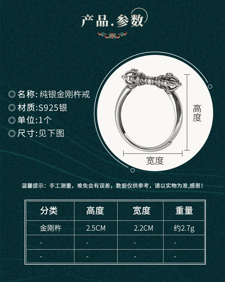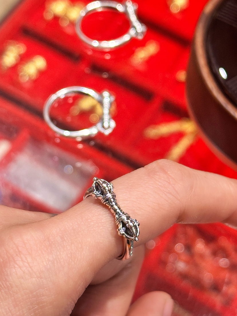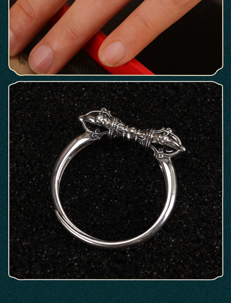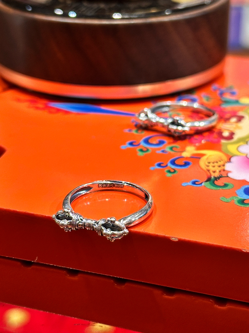 天语龙吟定制款纯银金刚杵戒指s9纯银男女金刚降魔杵金刚杵戒指