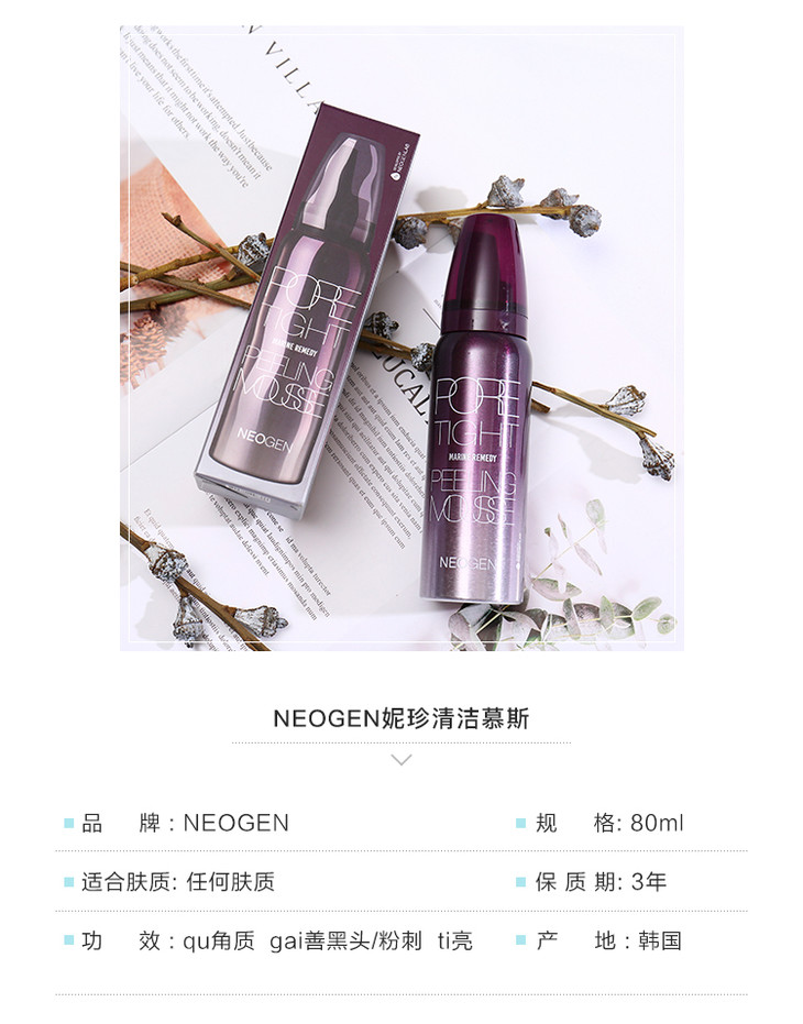 【毛孔清洁大师】韩国NEOGEN妮珍去角质泡沫慕斯摩丝80ml 深层清洁毛孔去死皮温和湿润