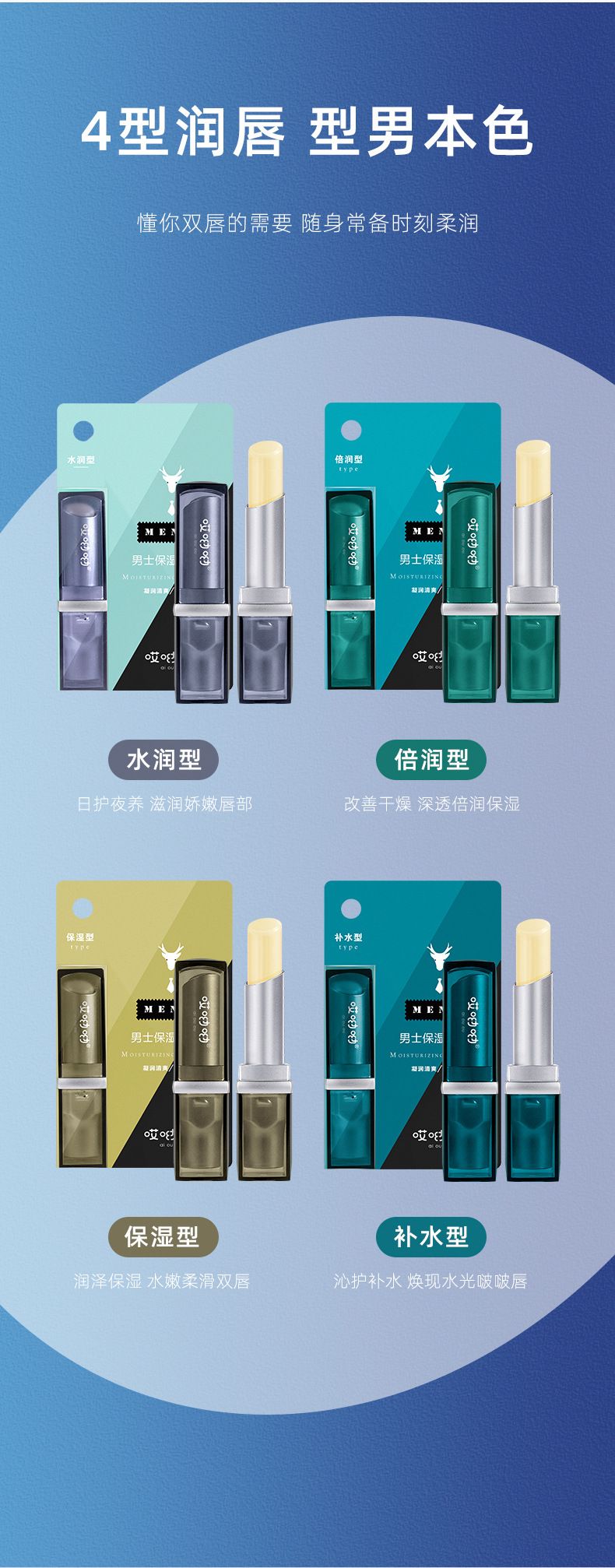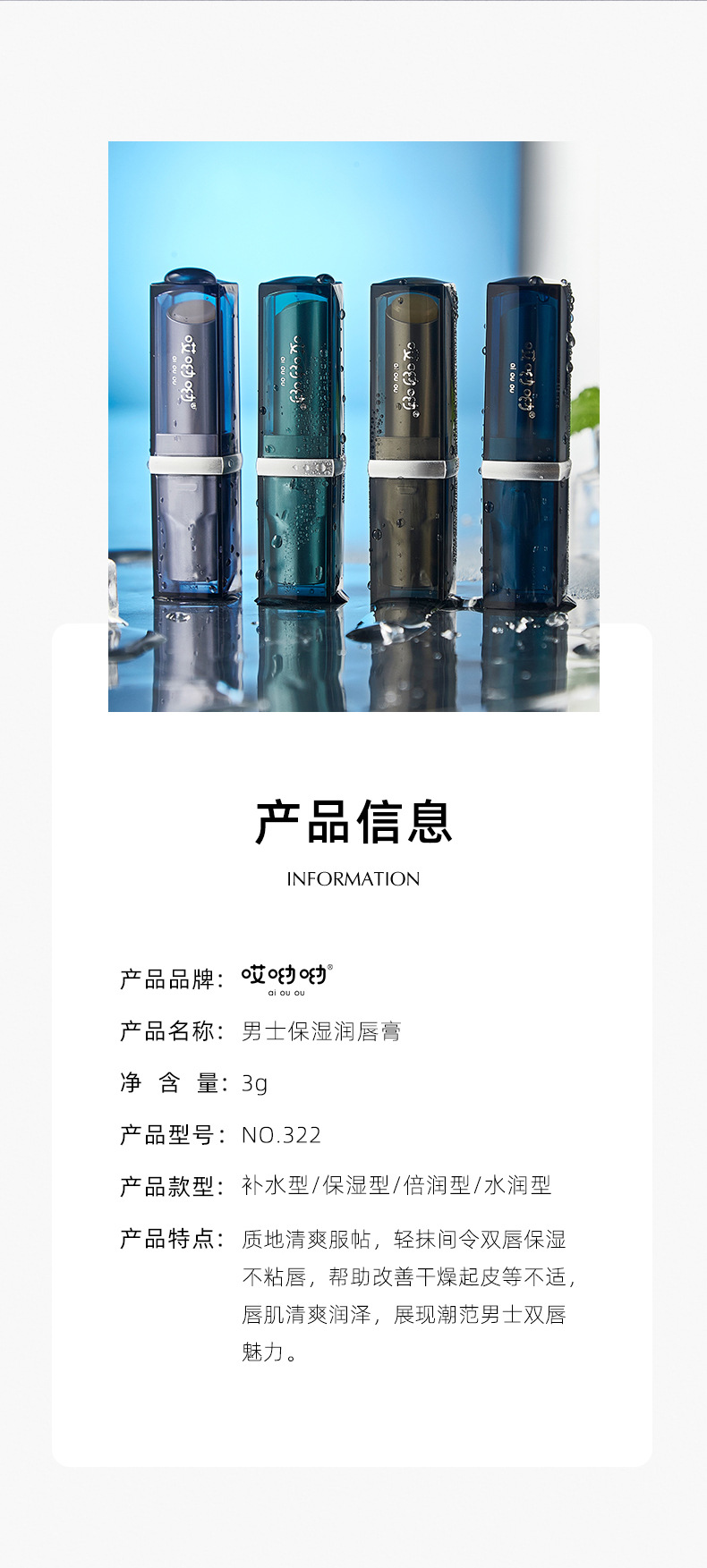 「12元包邮!四款可选」哎呦呦男士保湿滋润唇膏 清爽不粘腻舒缓修护男士专用美妆