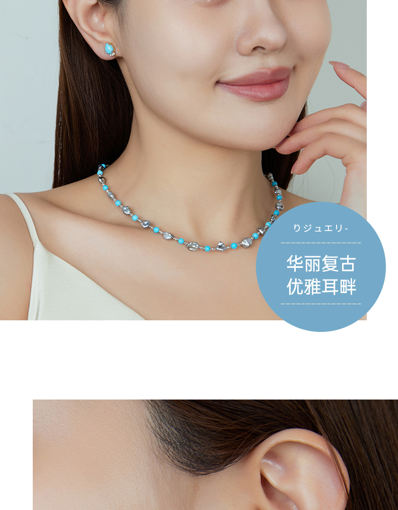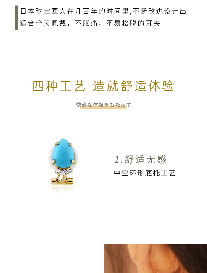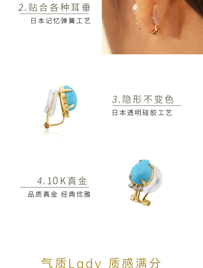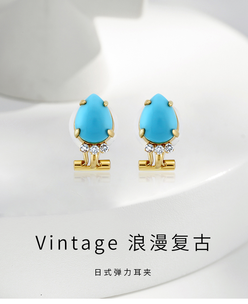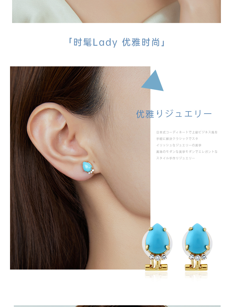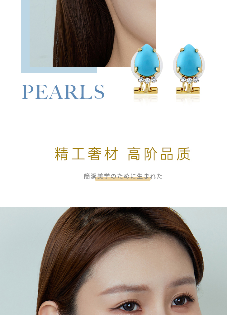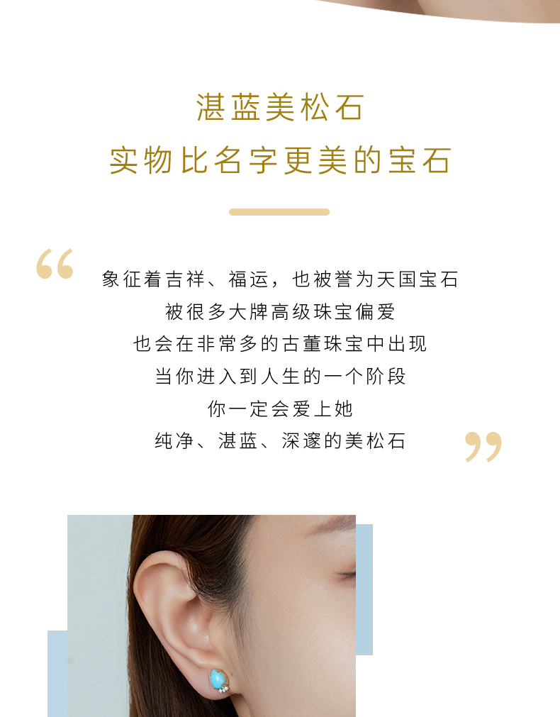 【挚友限定】悦甄 10K金美松石钻石耳夹 微蓝