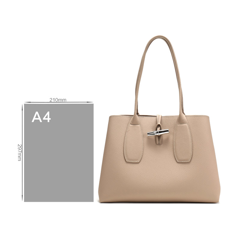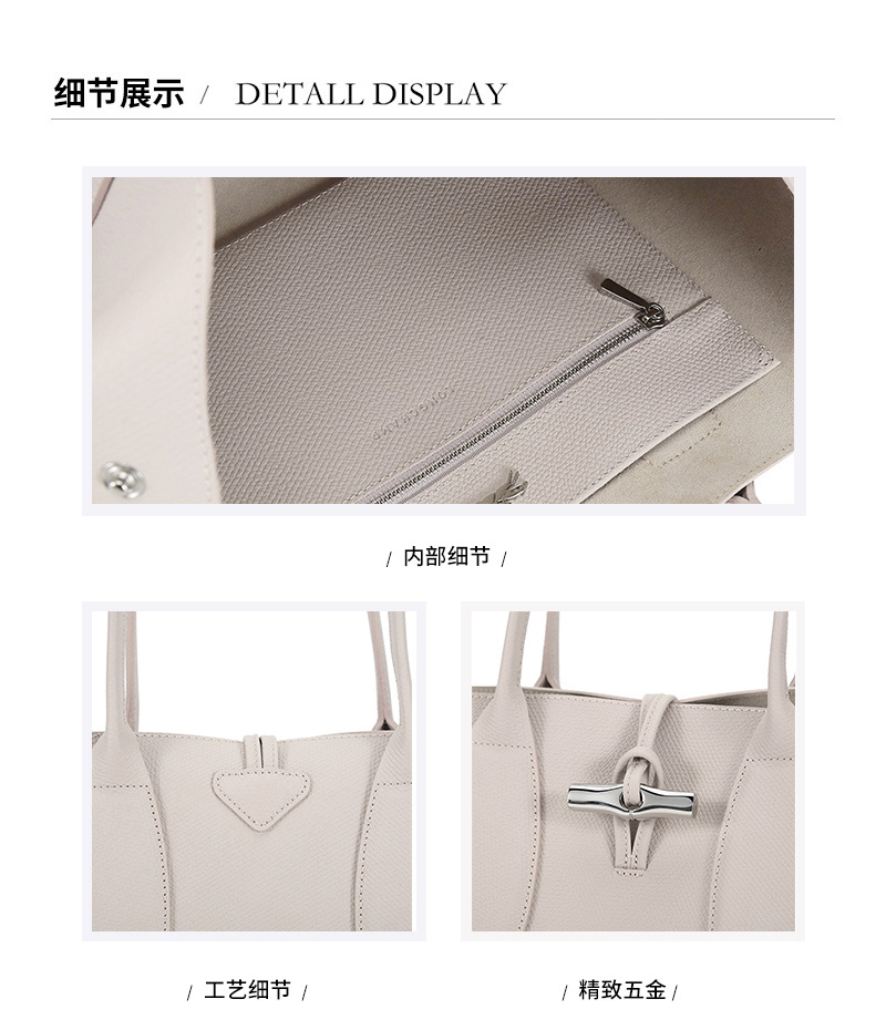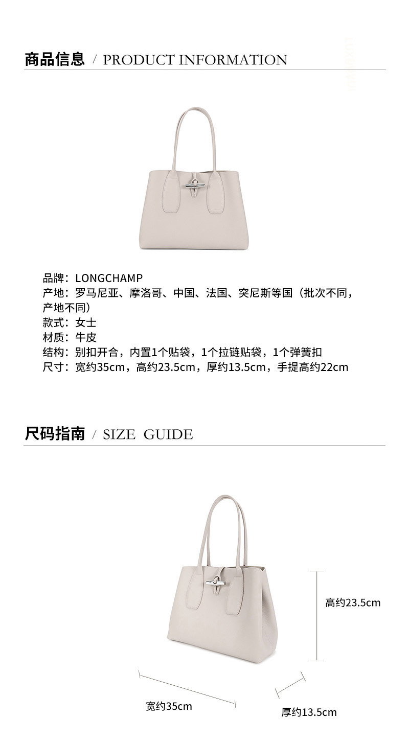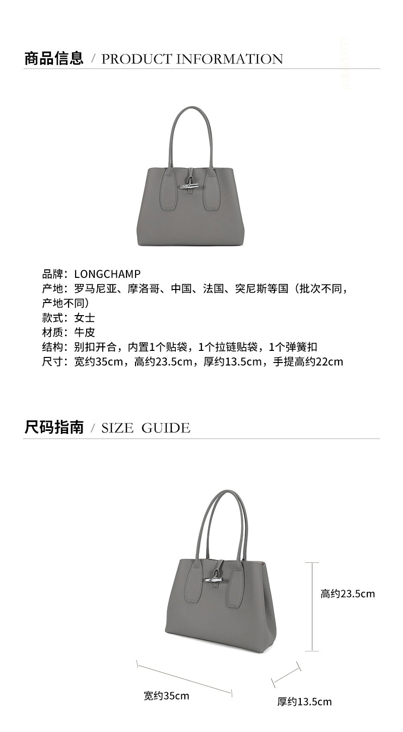 ![]() | 品牌:Longchamp/珑骧 产地:摩洛哥、中国、法国、突尼斯等国(批次不同,产地不同) 款式:女士 颜色:沙灰色 材质:牛皮 产品结构:开放式包口,别扣开合,内置1个贴袋,1个拉链贴袋 产品尺寸:上宽约48cm,下宽约35cm,高约25cm,厚约13cm,手提高约22cm