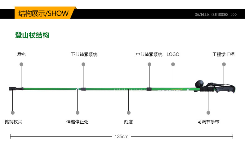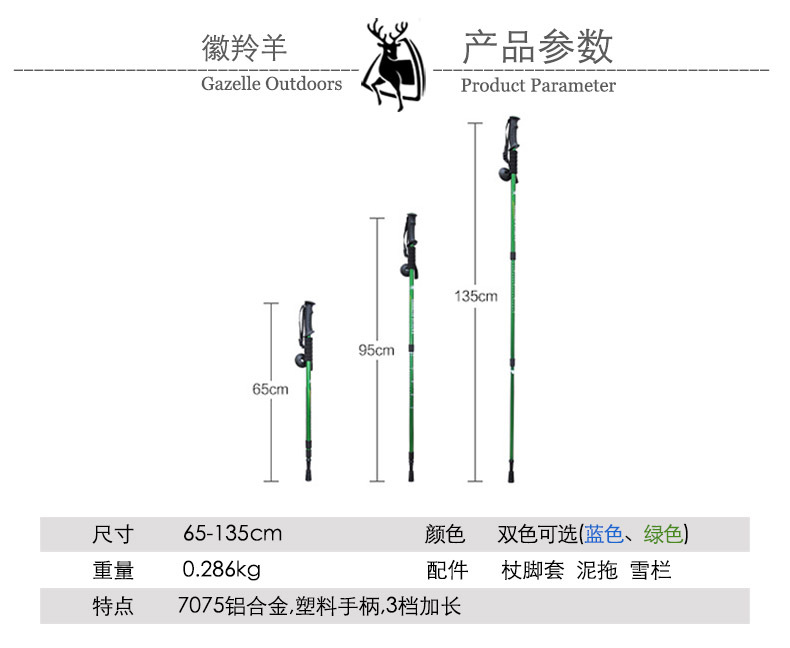 徽羚羊 轻登山杖伸缩折叠手杖徒步爬山拐杖健走棍 户外装备