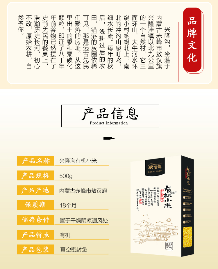 内蒙古赤峰敖汉有机小米500克