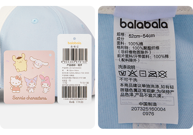【三丽鸥IP商场同款】巴拉巴拉儿童棒球帽小女孩帽子舒适轻便可爱