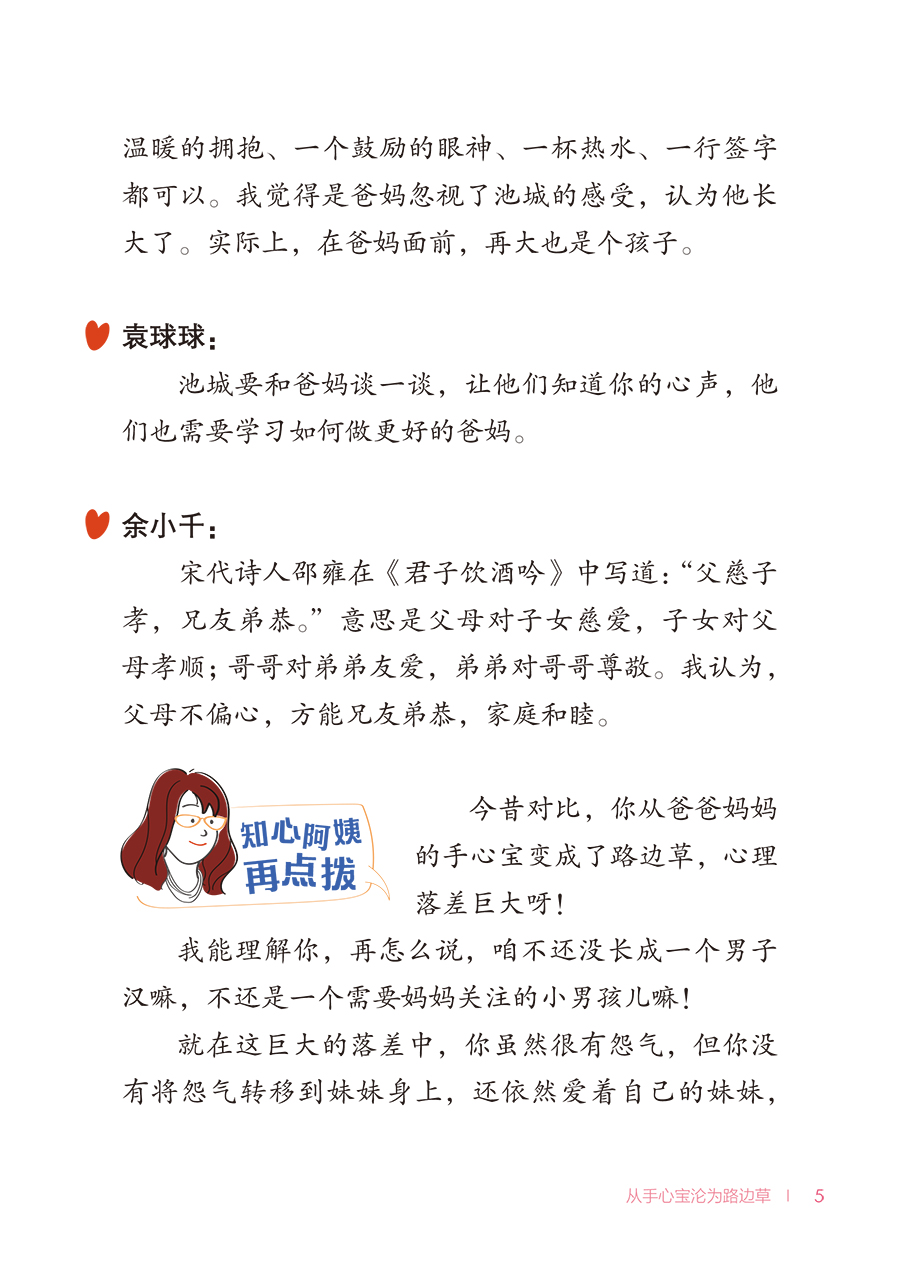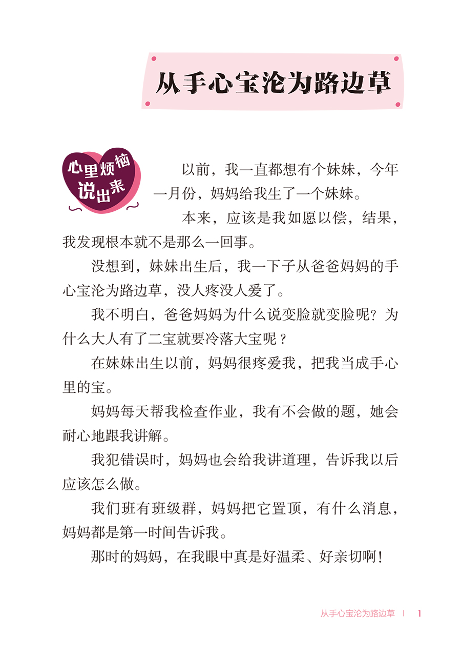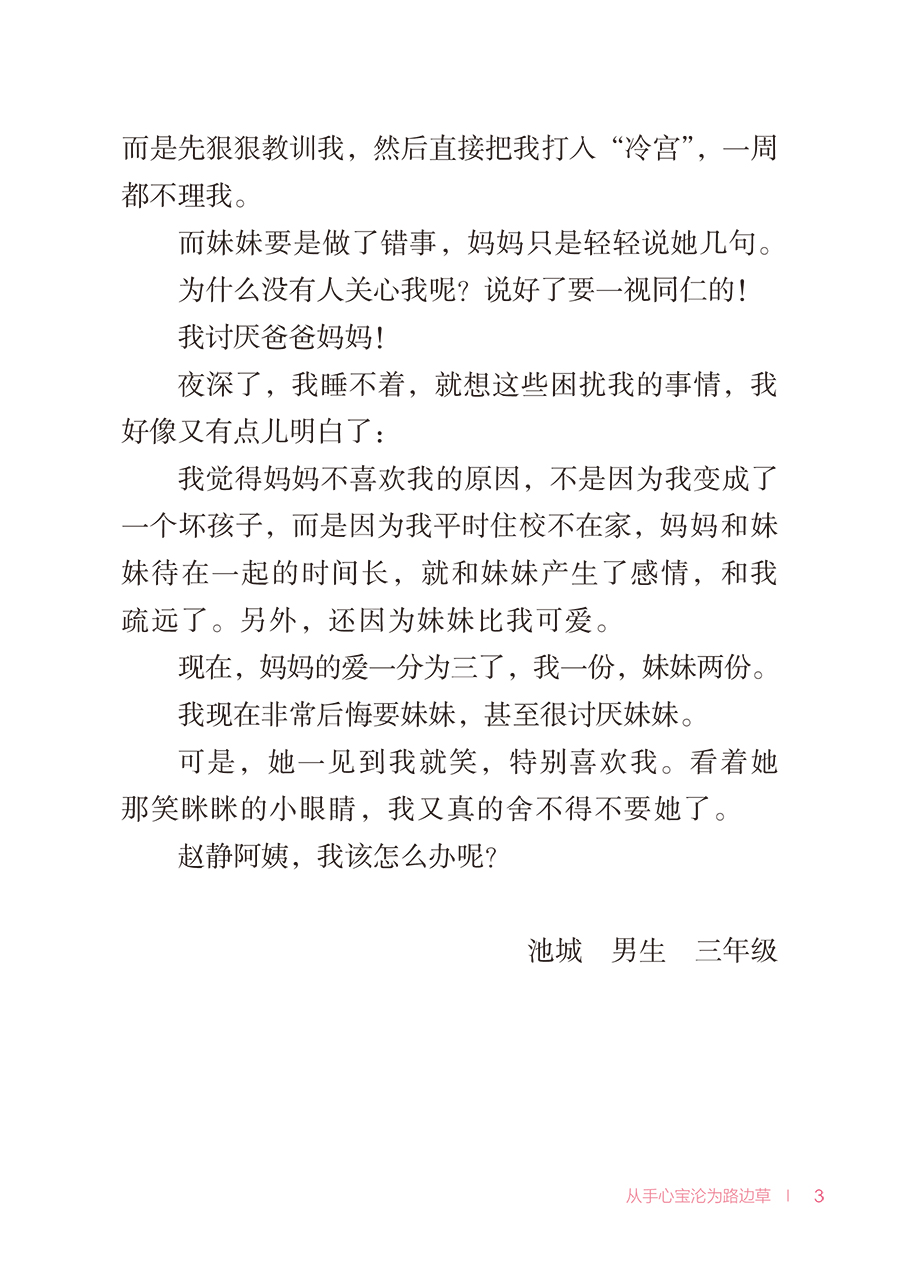 这是一本小学生心理健康故事读本,本书适读年龄为小学生,本书的素材来源于小学生的亲笔信,内容真实,生动活泼,对发生在小学社身上又不便向别人说的心理问题进行良好的疏导,于无形中为解决这个社会问题提供良好的途径。本书包含16个故事,解决孩子和兄弟姐妹之间的相处问题。内容结构清晰,每个故事包括4个部分,分别是小学生亲笔来信、同龄人支招、赵静老师点评、哲理故事延伸。让孩子能对照自身问题,寻求解决办法,减轻心理负担,消除负面情绪。在故事的最后,有心理专家针对孩子们关注的两个心理问题进行解答,为解决孩子的烦恼给出方法。