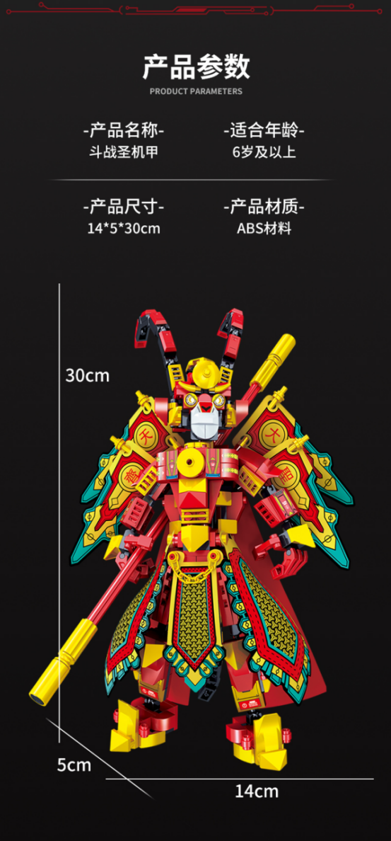 ✅大悟空:国潮机甲风拉满,红金配色奢华霸气 食品级ABS材质,1012颗粒精致压膜 附赠盔甲精美贴纸 拼装过程,是与大圣的深度对话 每一块积木都藏着东方韵味 多关节灵活可动,机甲姿态栩栩如生,威风尽显 👦全年龄段通吃,从孩童到大人都能沉浸式体验拼搭乐趣