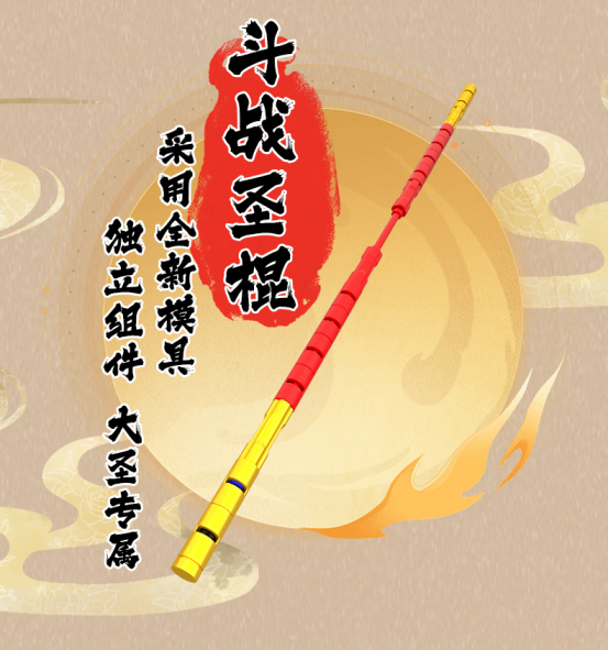 斗战圣棍超硬核 独立模具打造专属武器 区别于常规积木零件 它从棍身纹理到两端色泽都经精细雕琢 每一处细节都精准呼应原著神韵 握在手中,瞬间复刻大圣的霸气外露