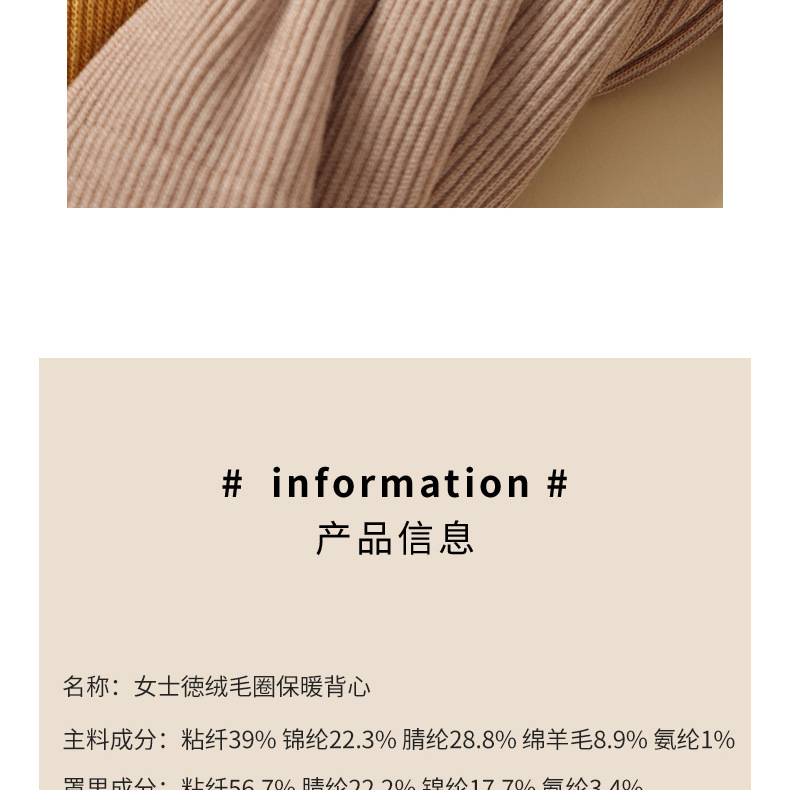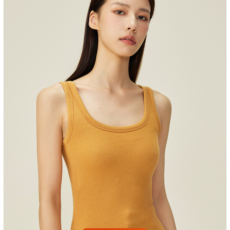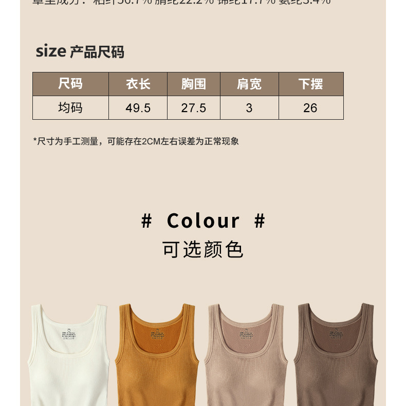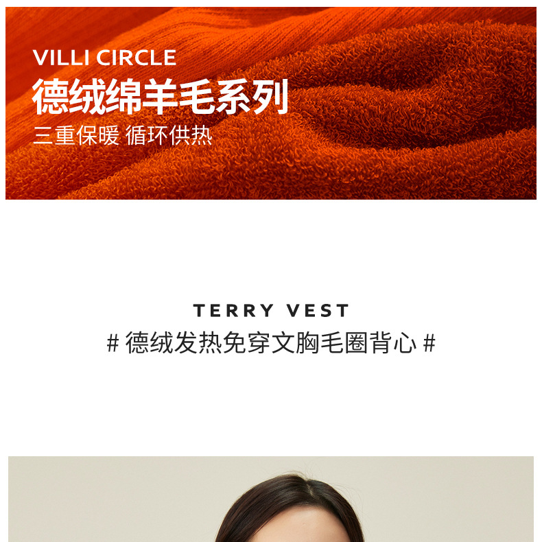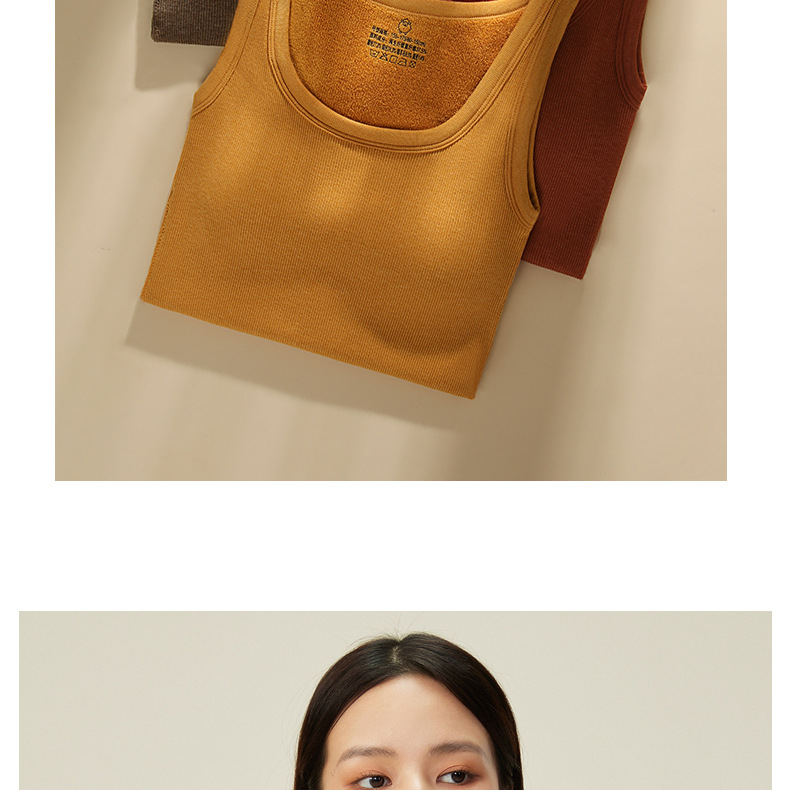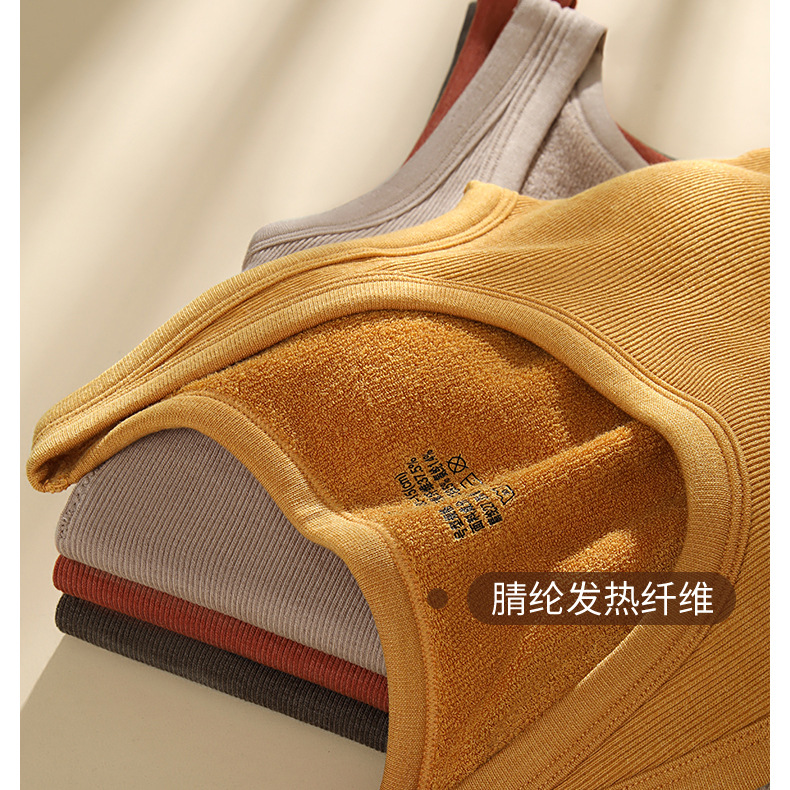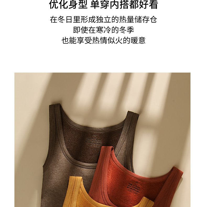 【拍2件99元】秋冬德绒保暖背心带胸垫女款加绒U领毛圈绵羊毛发热保暖打底