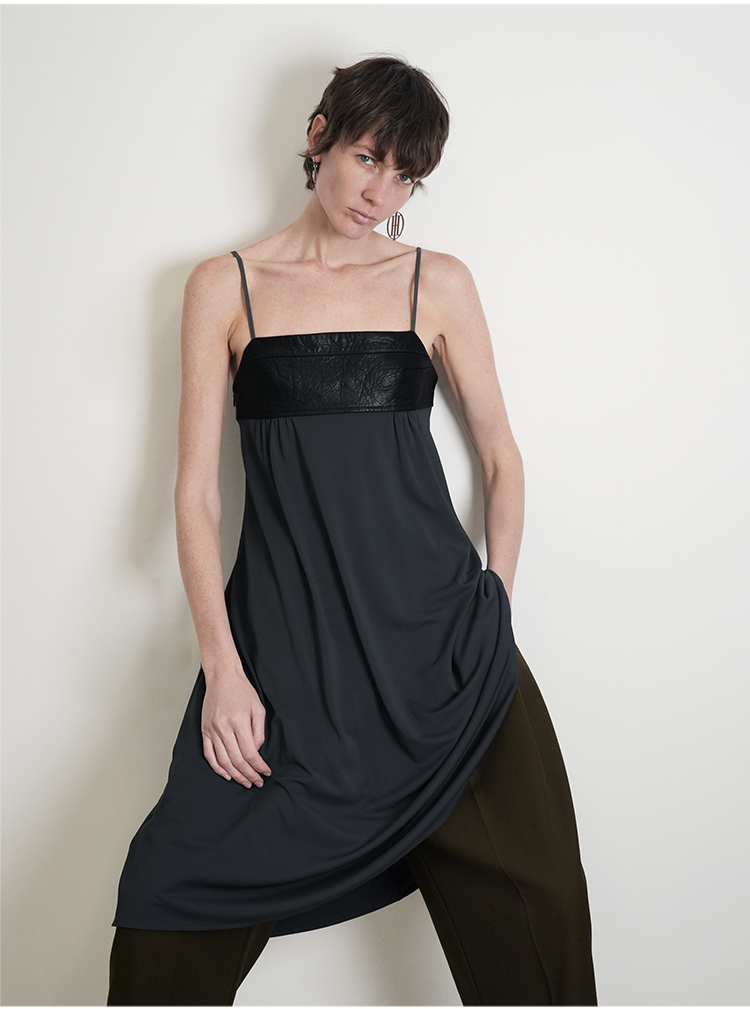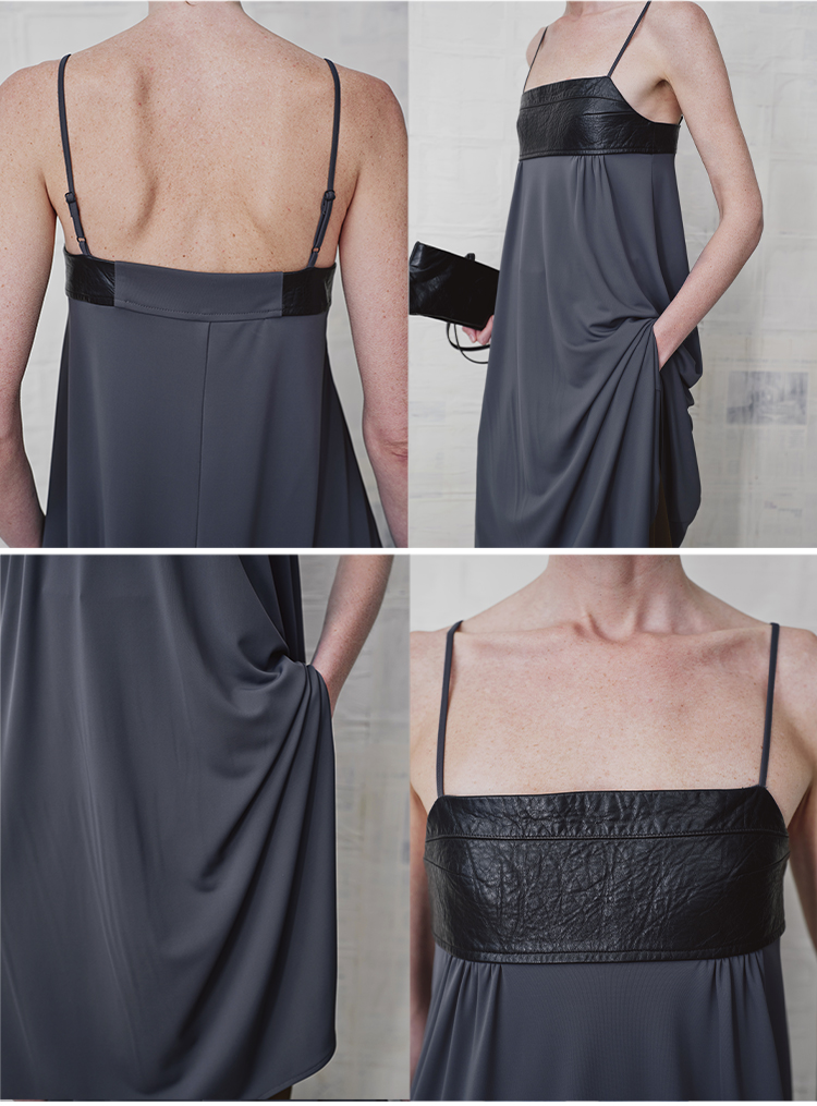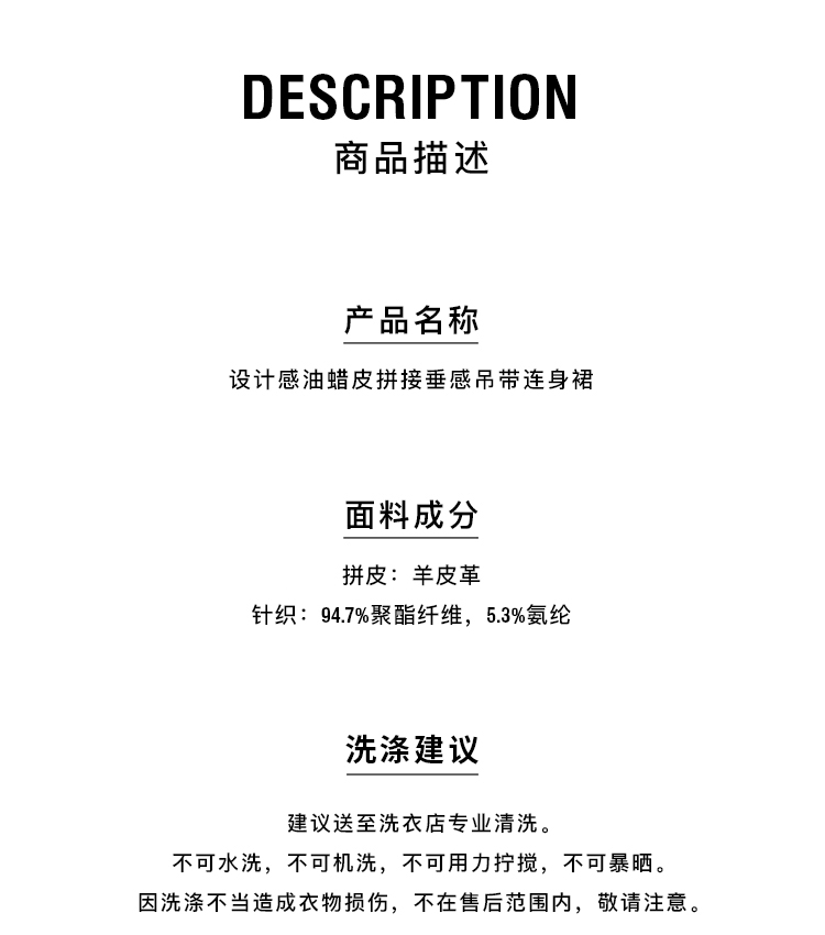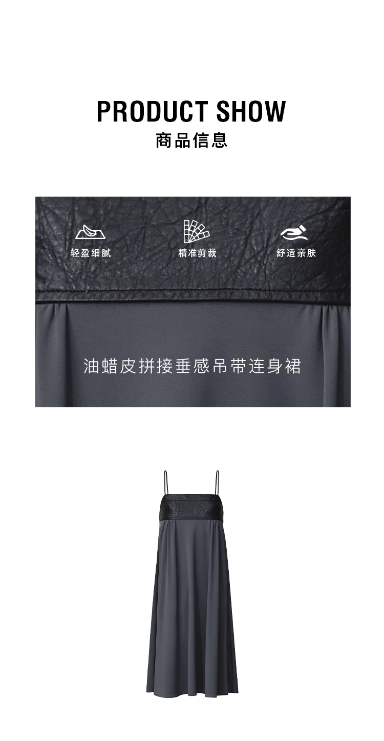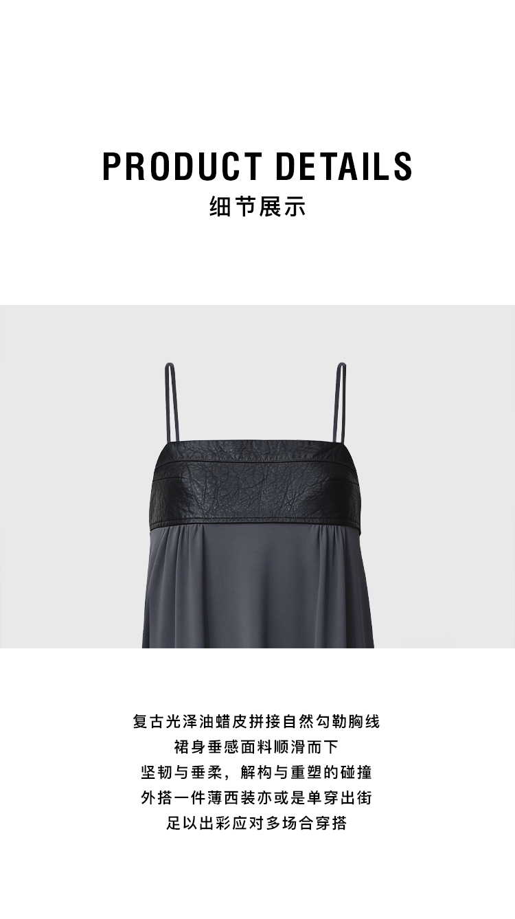 HIDEMI 设计感油蜡皮拼接垂感吊带连身裙