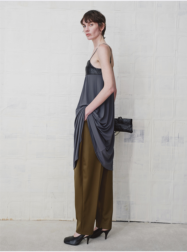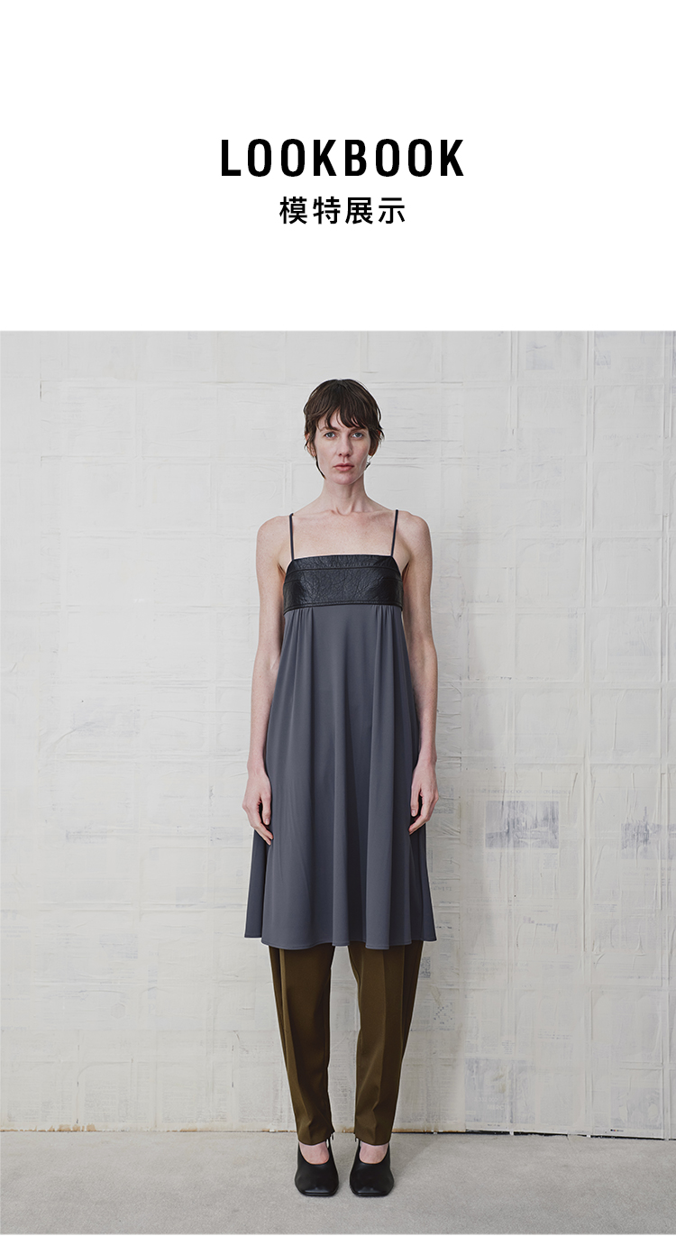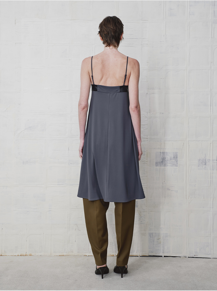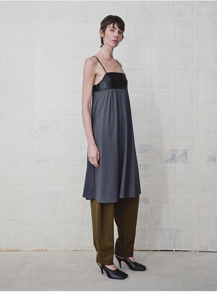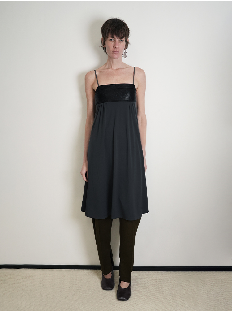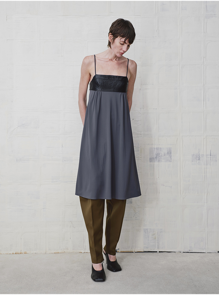 HIDEMI 设计感油蜡皮拼接垂感吊带连身裙