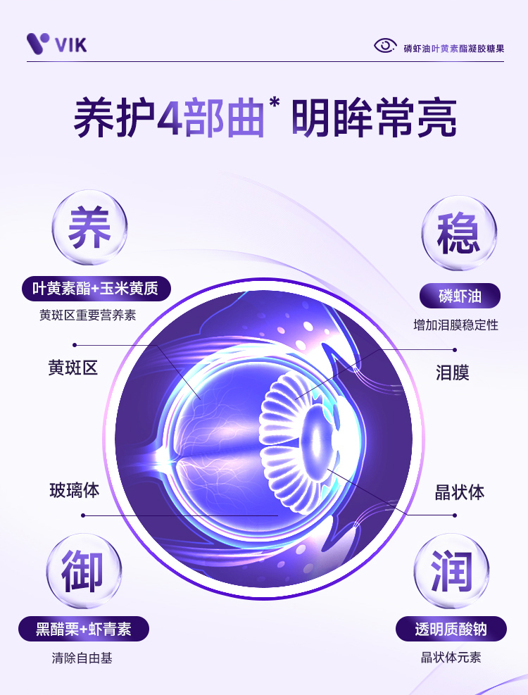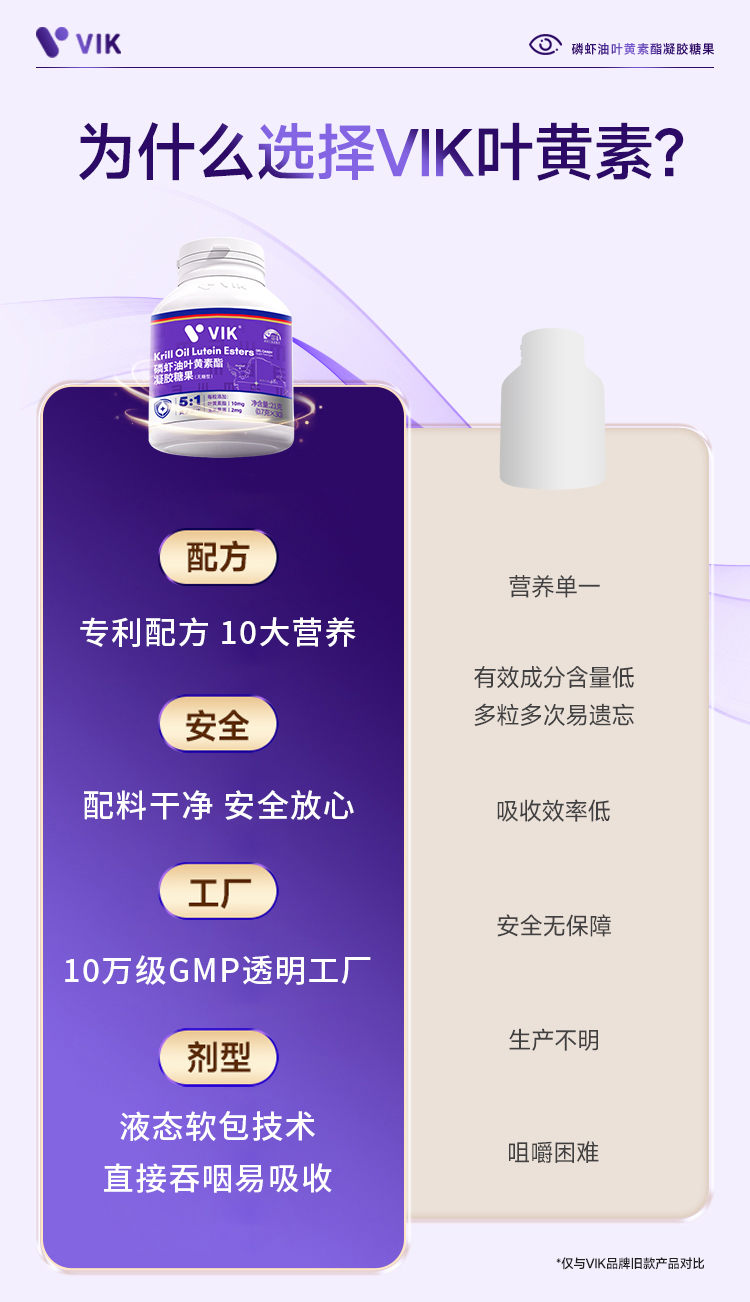 【买6瓶加送水飞蓟黄芪丹参胶囊】VIK磷虾油叶黄素酯 专利配方 叶黄素酯+玉米黄质5:1科学配比更有效