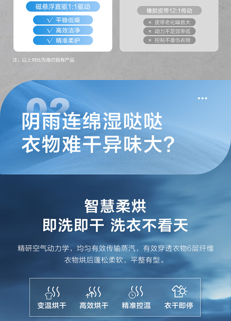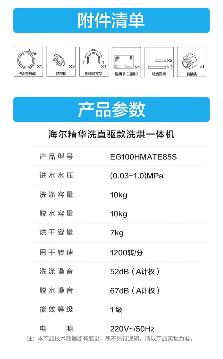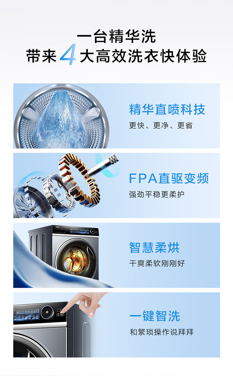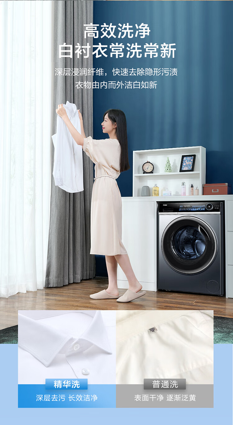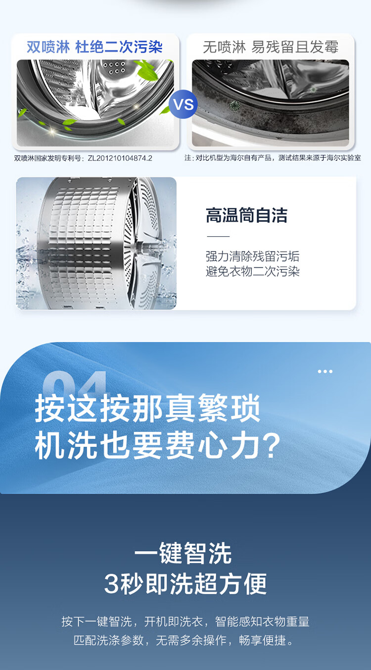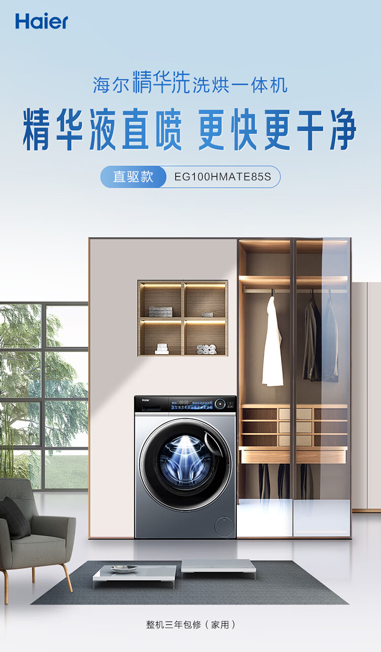 海尔精华洗系列 10KG洗烘一体 直驱 晶彩屏 清新除皱 EG100HMATE85S