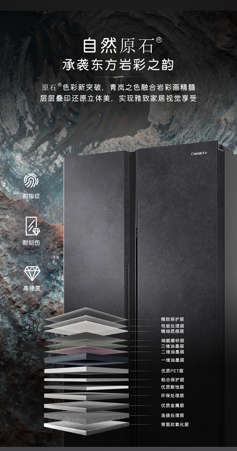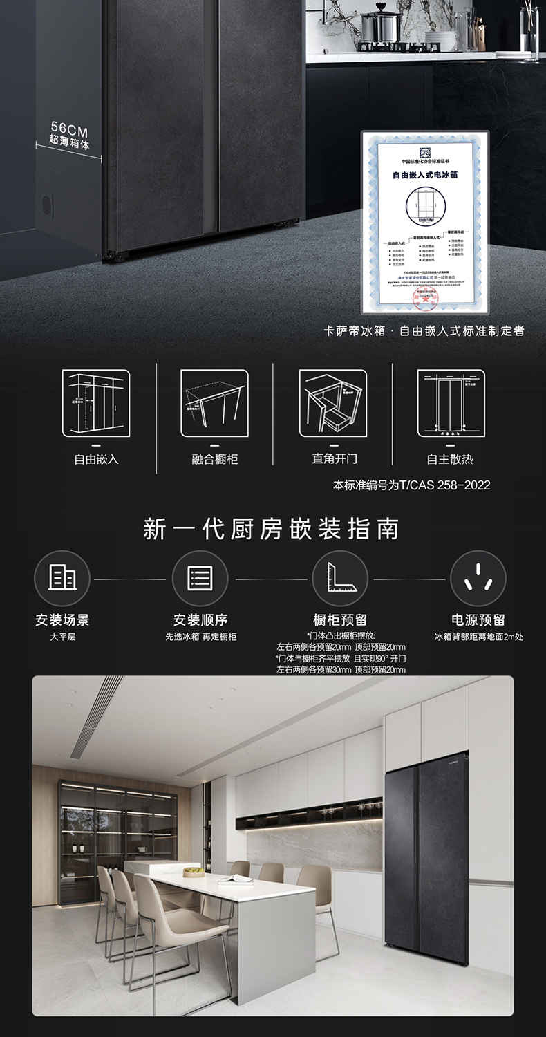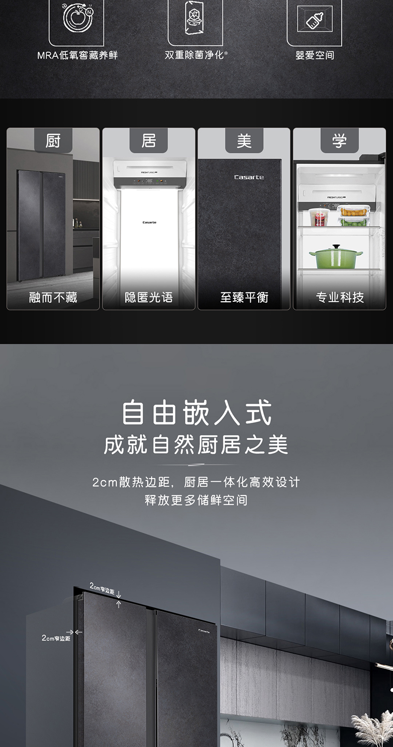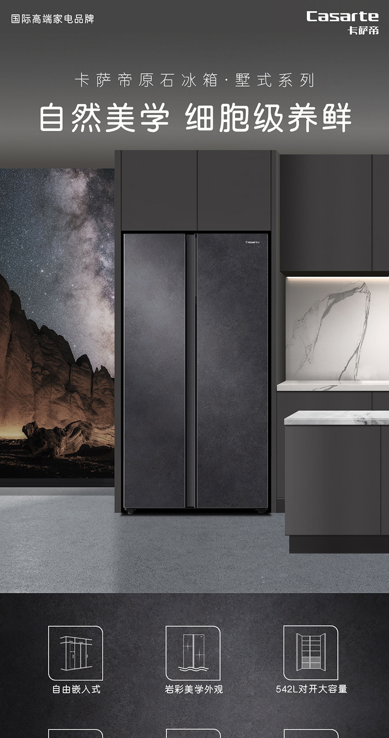 卡萨帝原石542L自由嵌入式双开门一级能效变频大容量风冷超薄家用冰箱BCD-542WGCSSM9DEU1