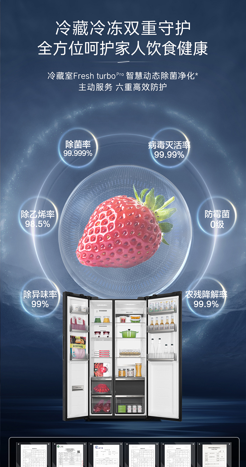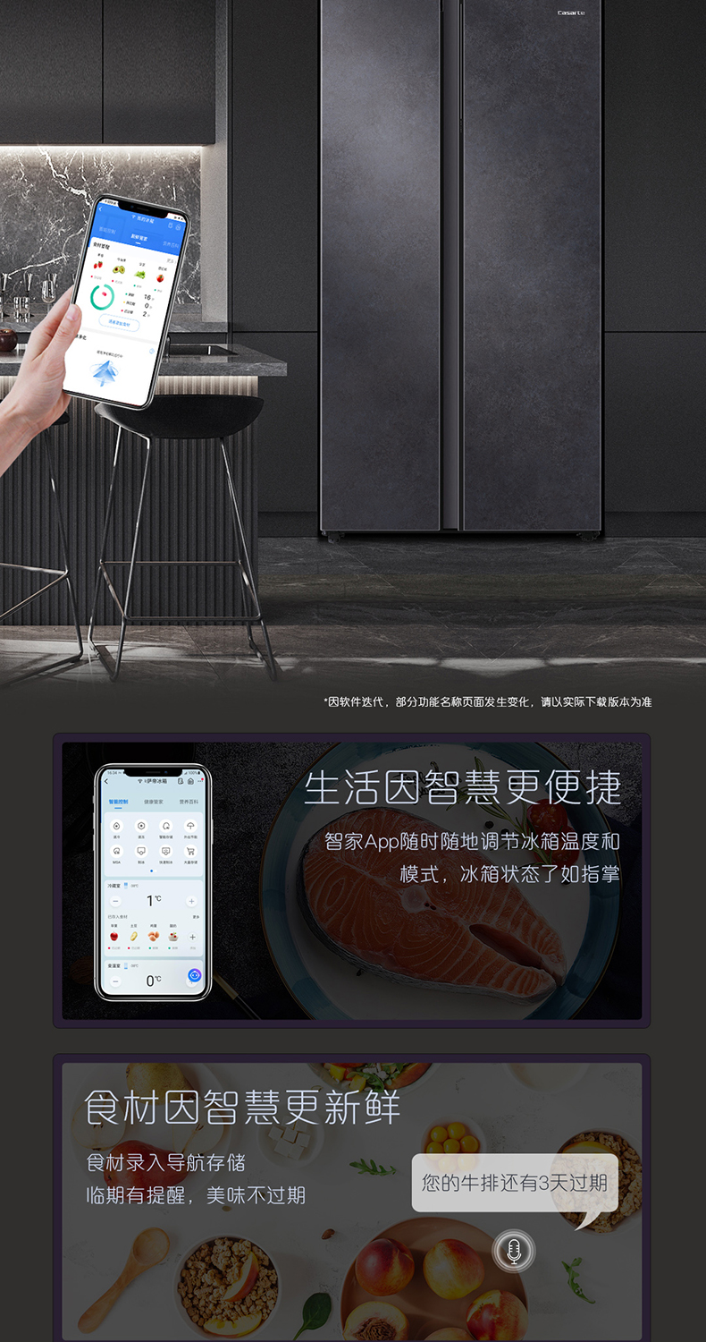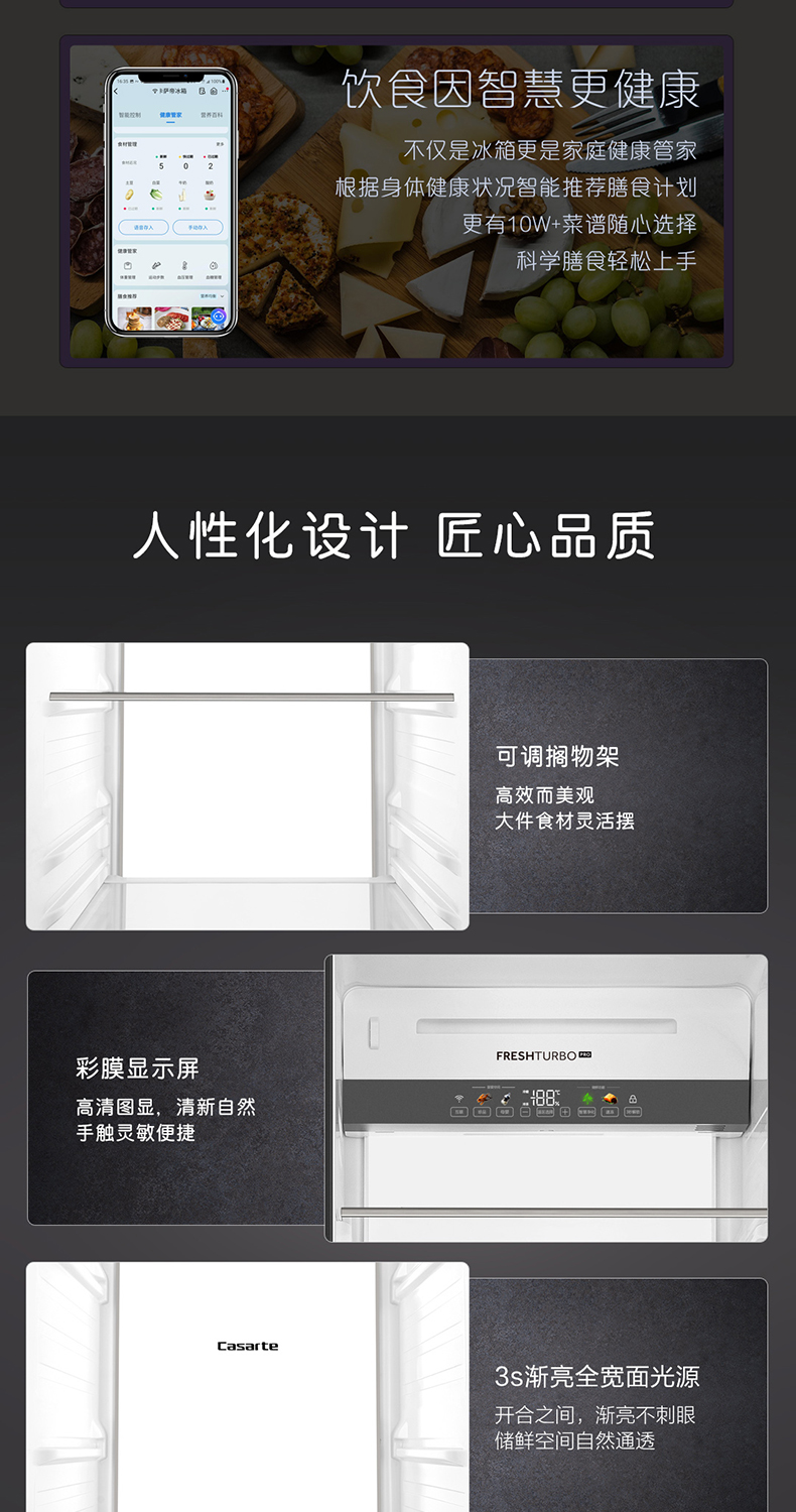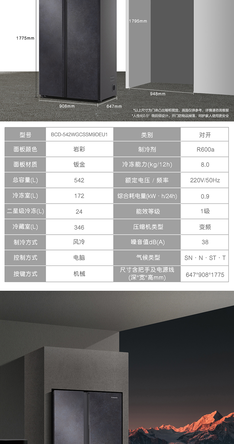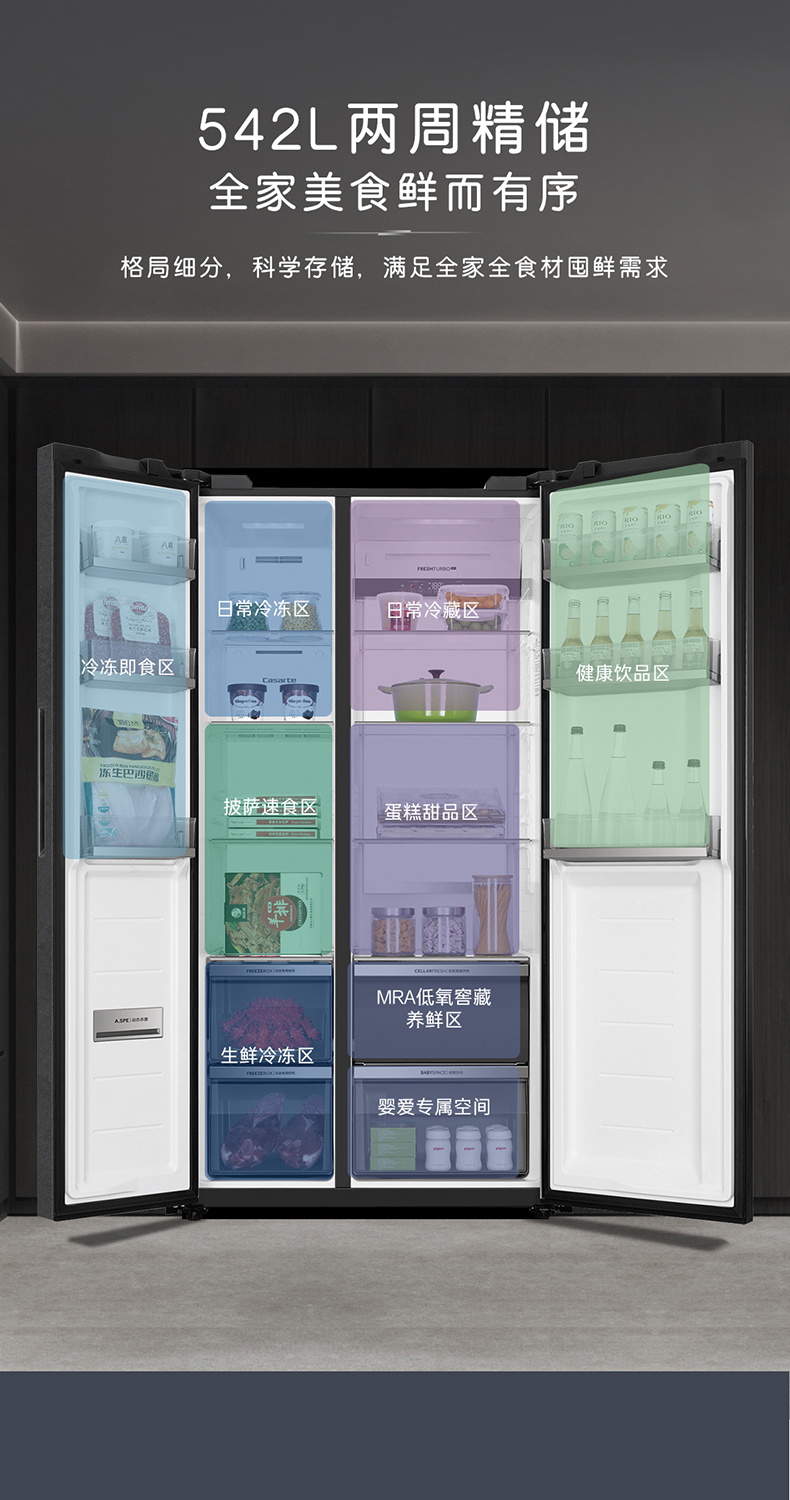 卡萨帝原石542L自由嵌入式双开门一级能效变频大容量风冷超薄家用冰箱BCD-542WGCSSM9DEU1