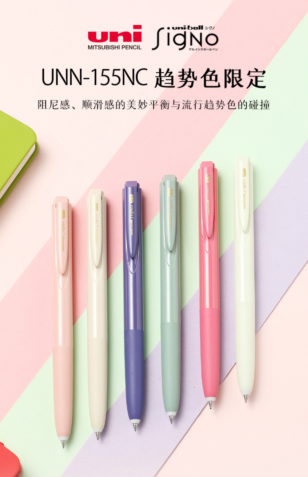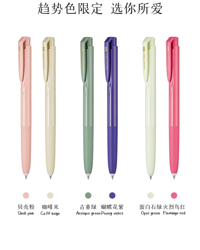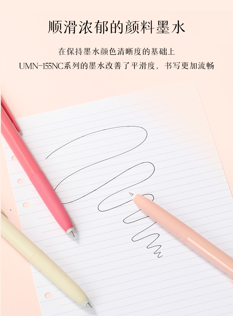 uni三菱中性笔UMN-155NC趋势色限定低阻尼顺滑按动式0.5mm黑色笔古董绿贝壳粉咖啡米
