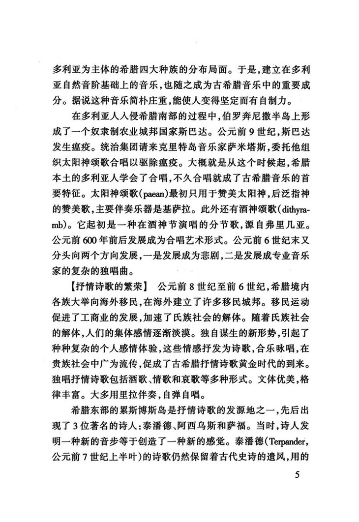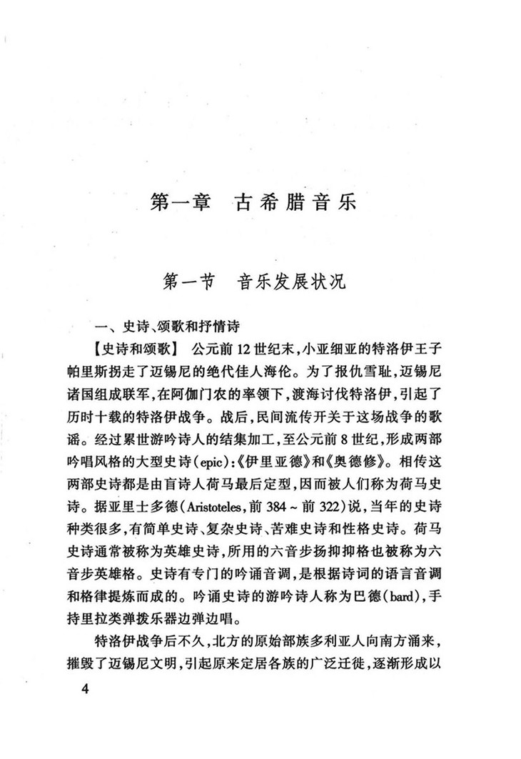 第一节音乐发展状况——史诗、颂歌和抒情诗/竞技比赛中的音乐和古希腊悲剧/音乐生活的变化和律学、伦理学的发展