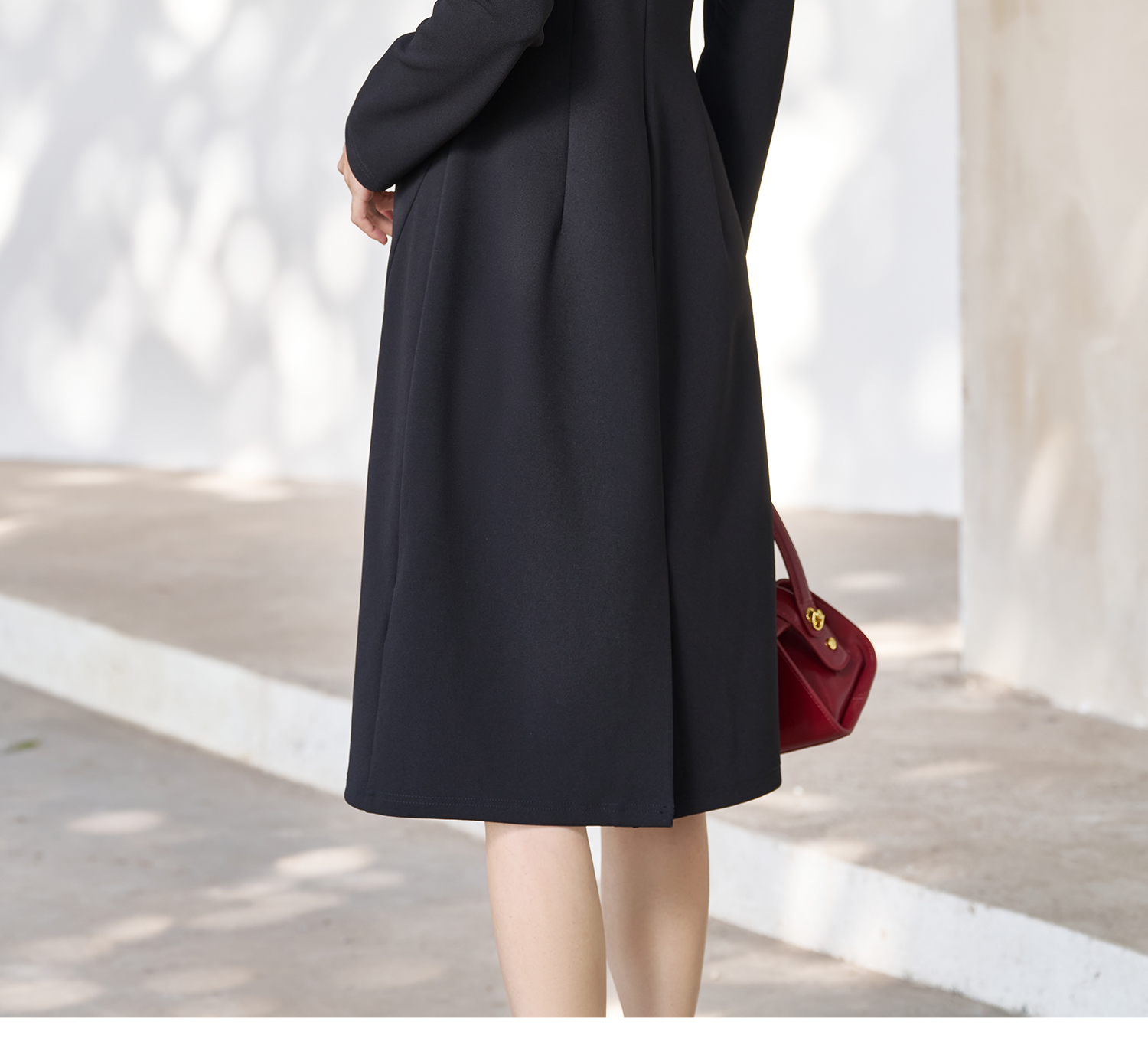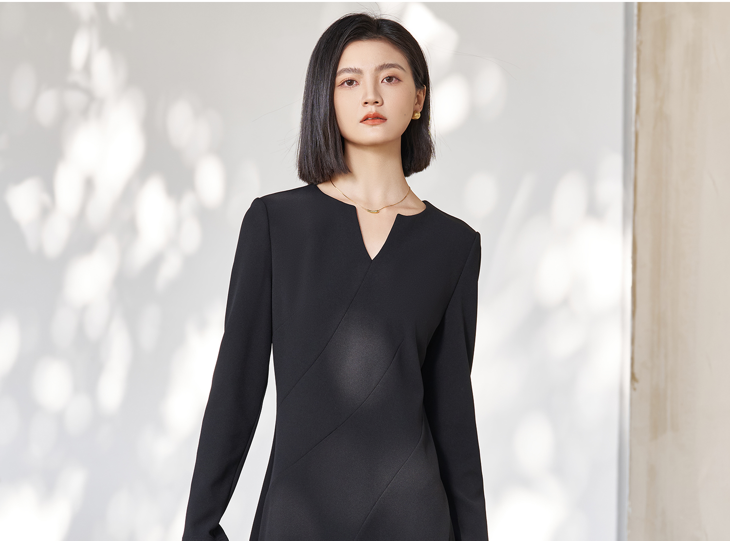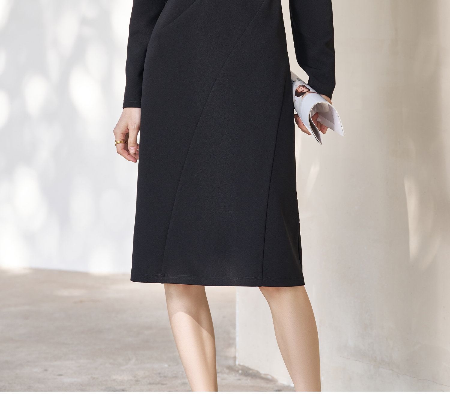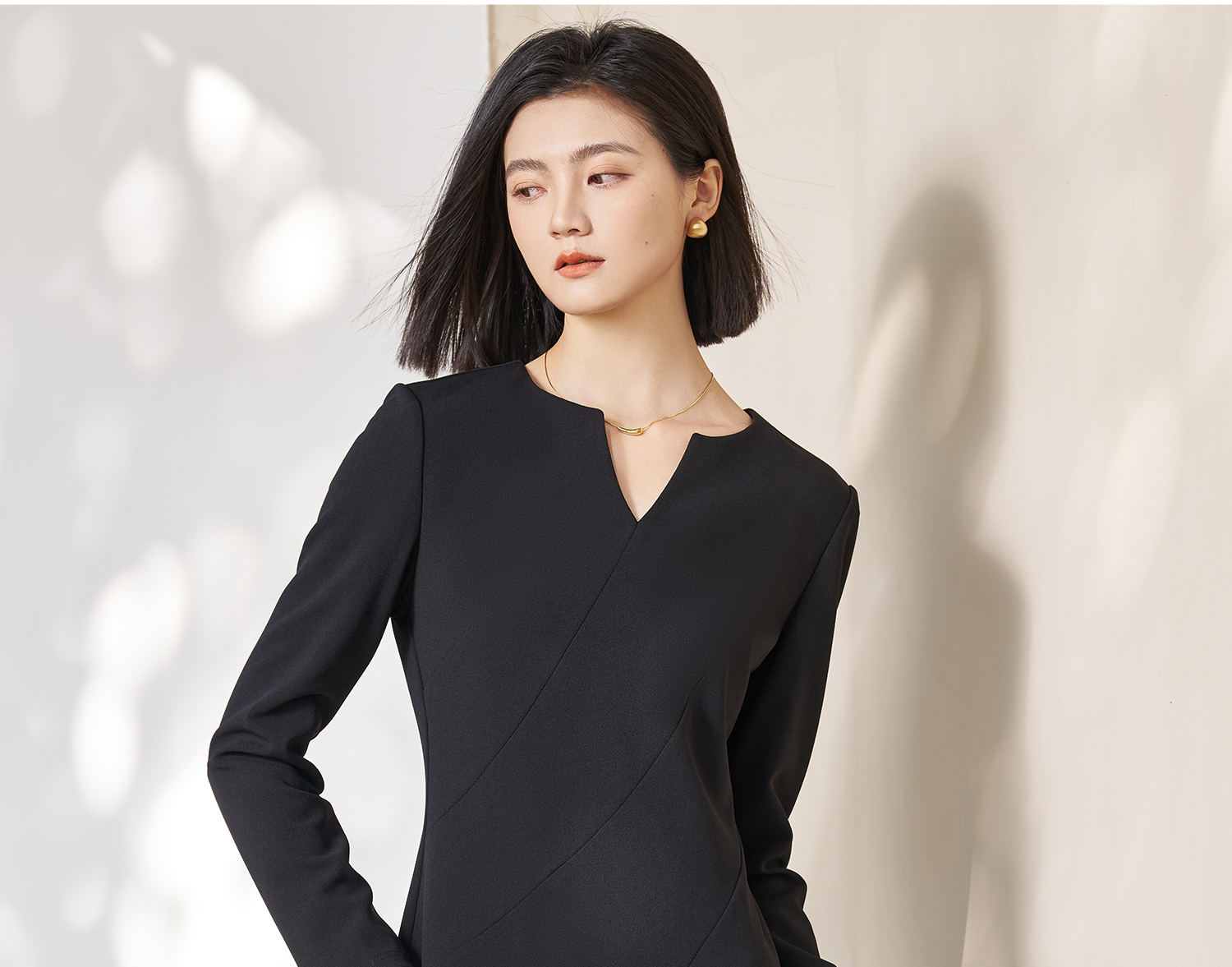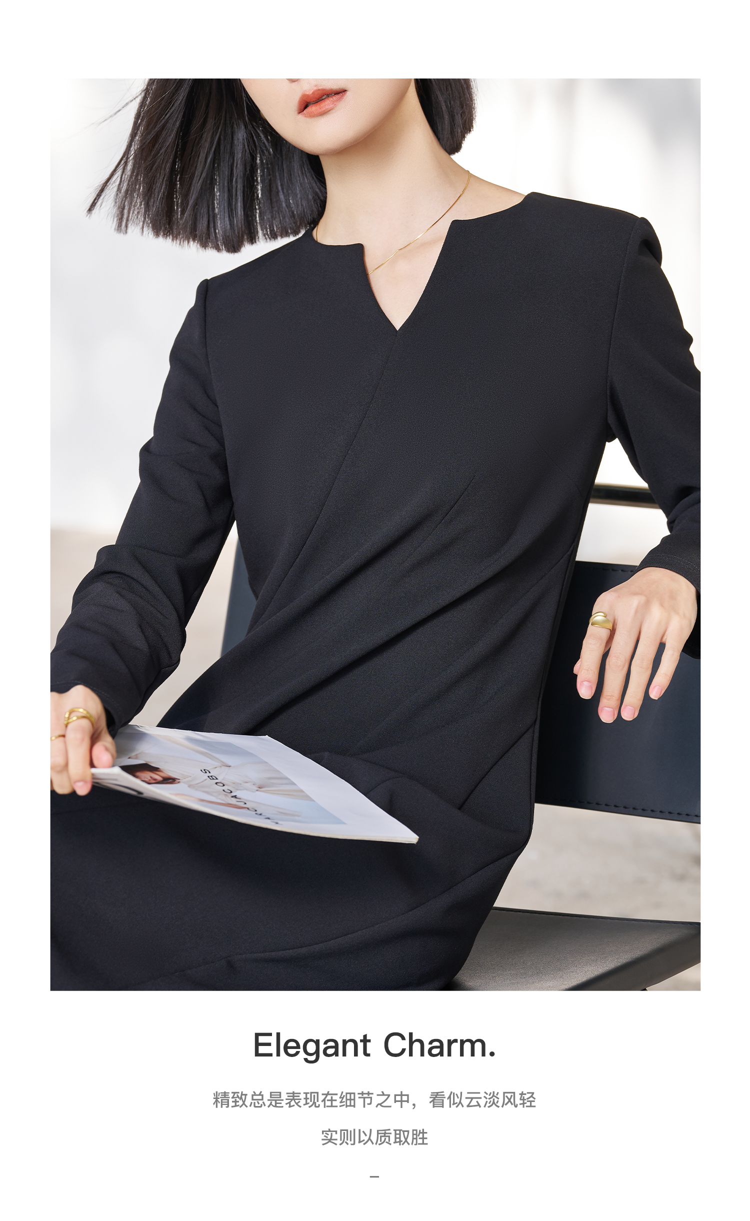 剩S/M/L 米思阳2026春季新款简约高级感小V领连衣裙挺阔版型显瘦裙子5053