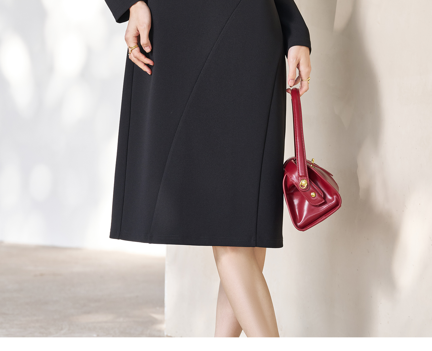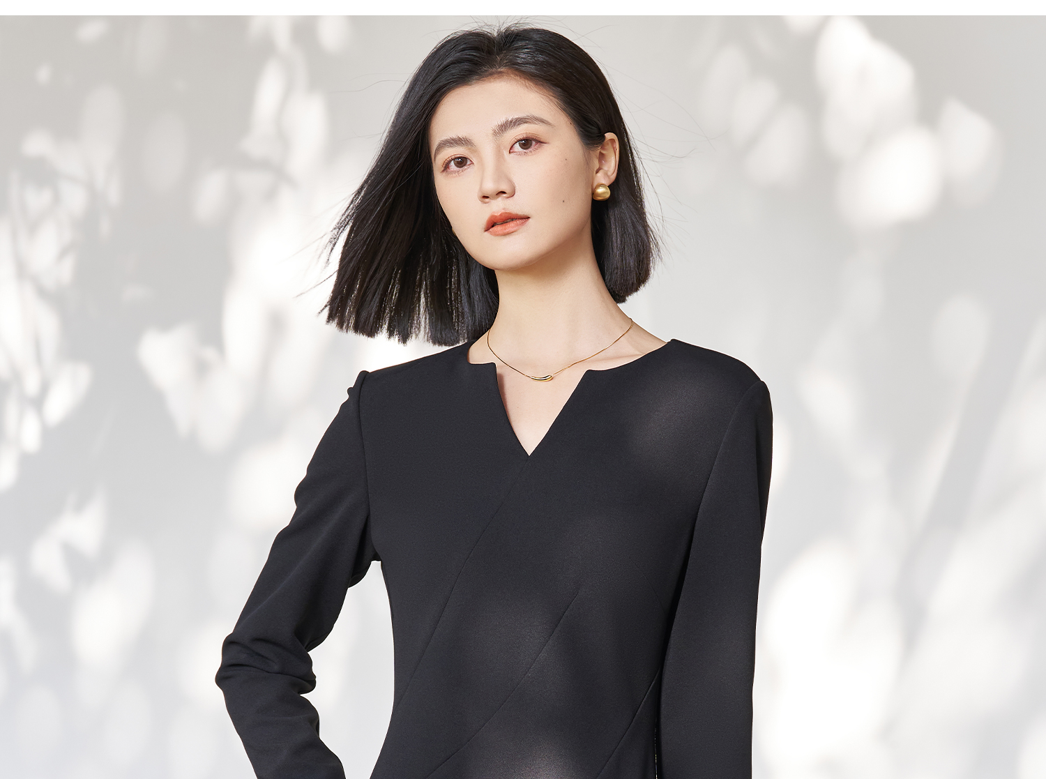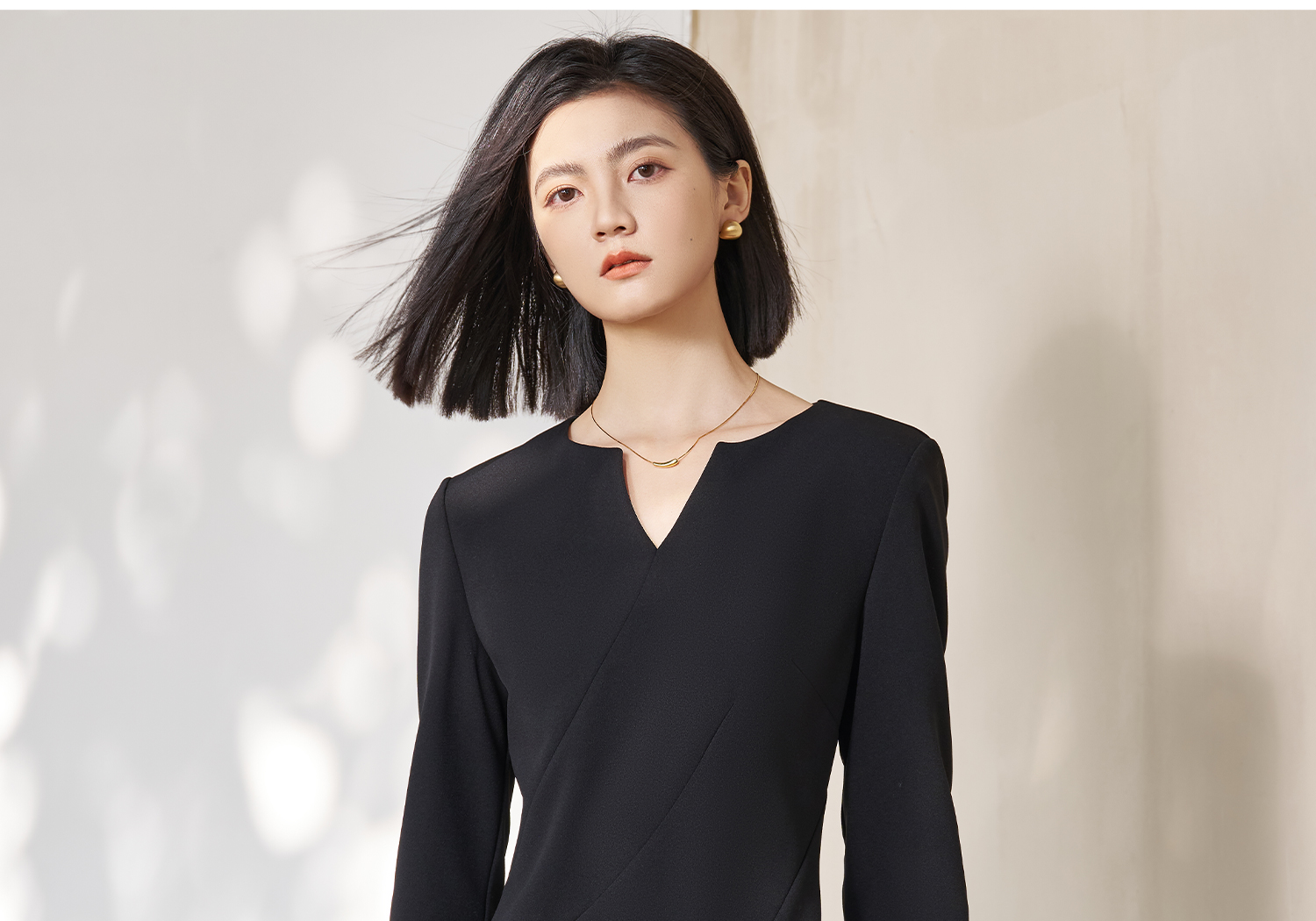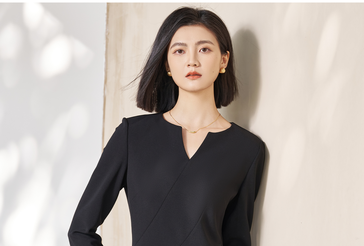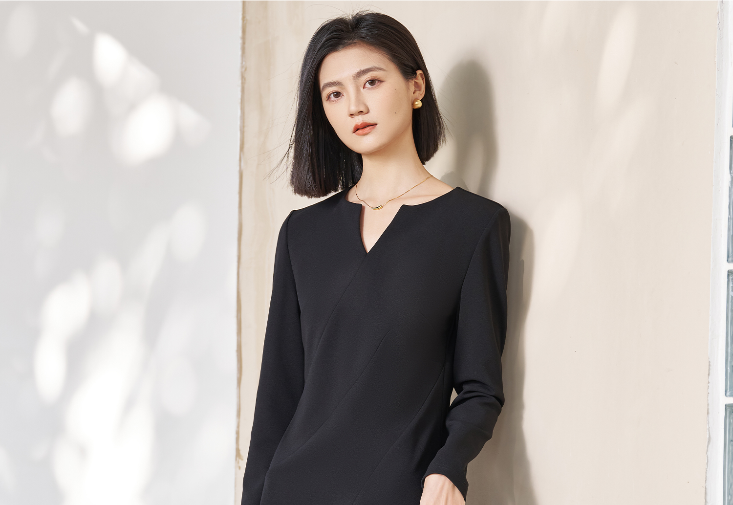 剩S/M/L 米思阳2026春季新款简约高级感小V领连衣裙挺阔版型显瘦裙子5053