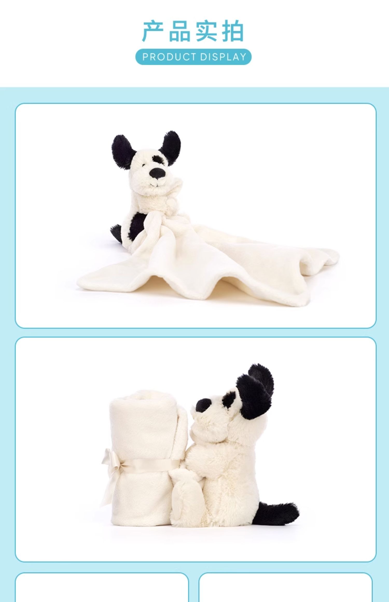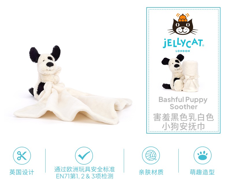 Jellycat 害羞黑色乳白色小狗安抚巾 4cm