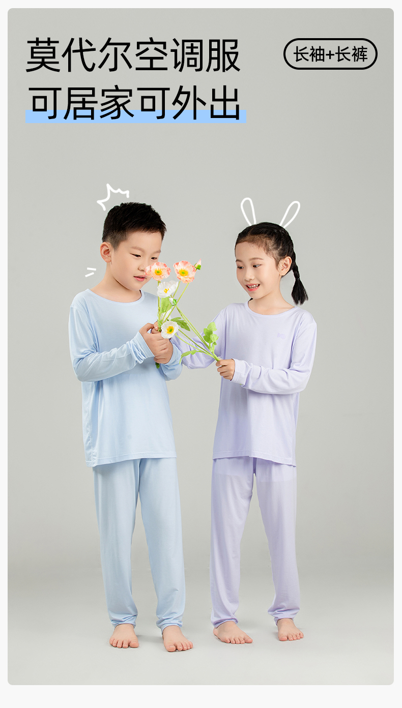【商场同款】熳洁儿 莫代尔儿童家居服夏季长袖长裤薄款空调服25703668
