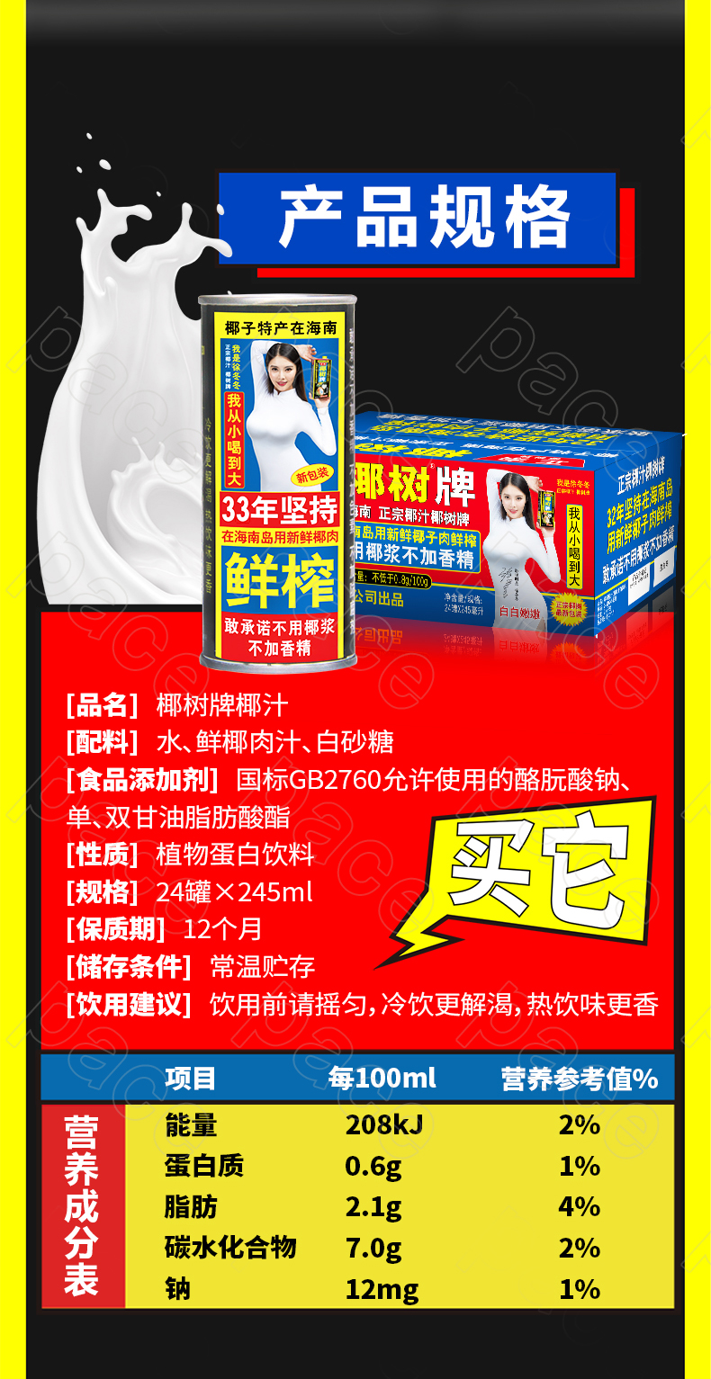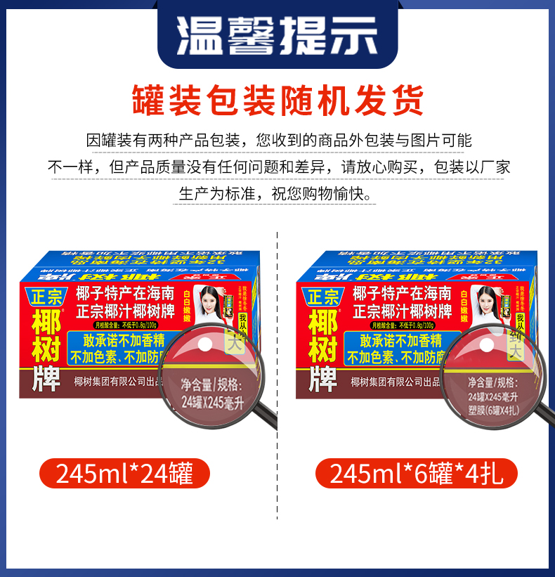 椰树 椰汁正宗椰树牌椰子汁 植物蛋白饮料 245ml*6罐*4扎 整箱装
