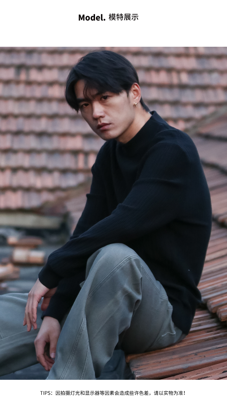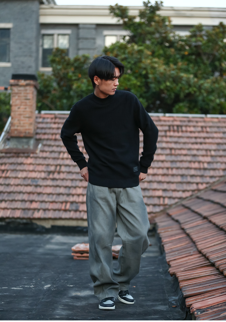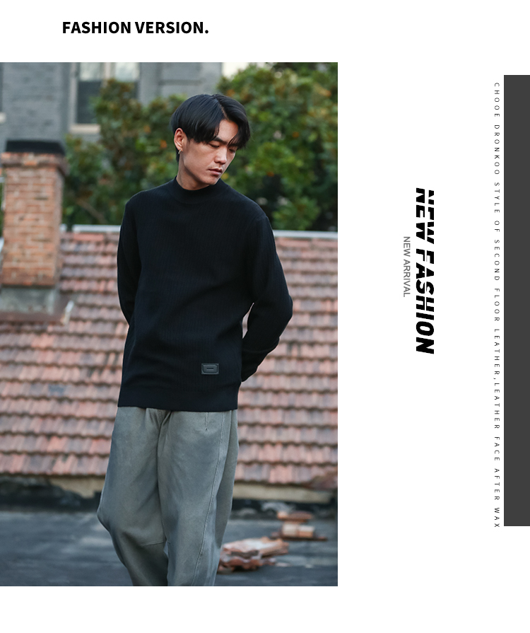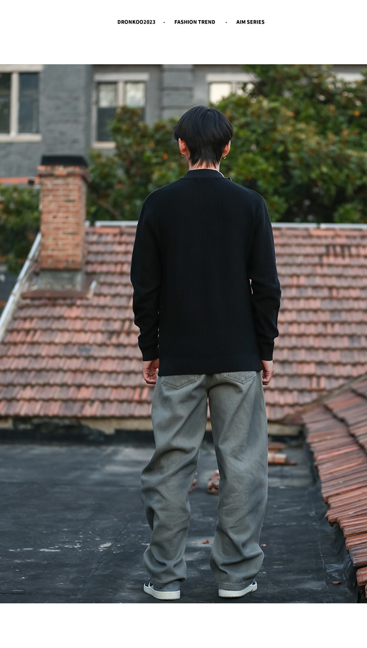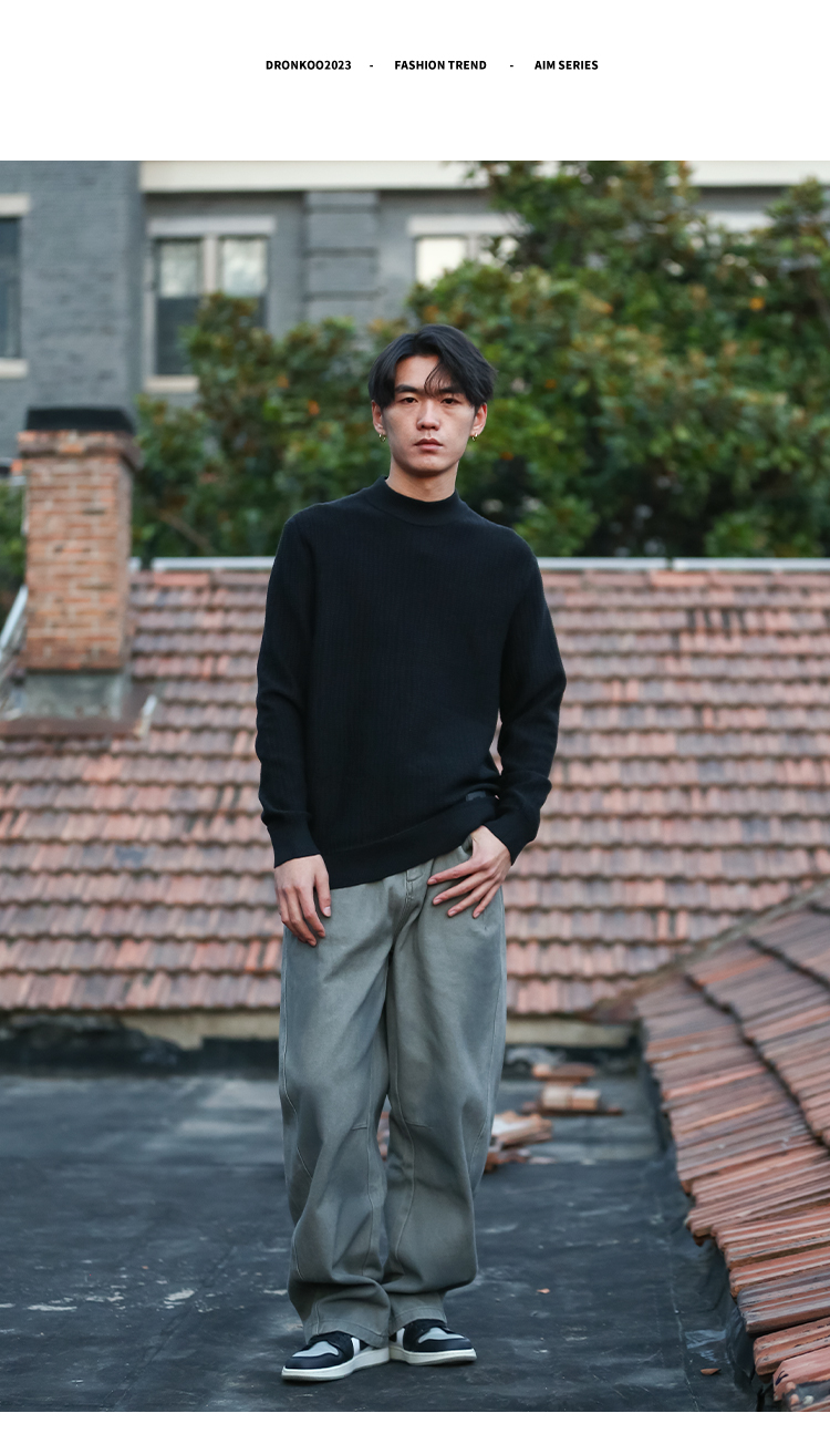 DRONKOO 2025 中领左下皮标不规则方格竖线提花厚毛衣