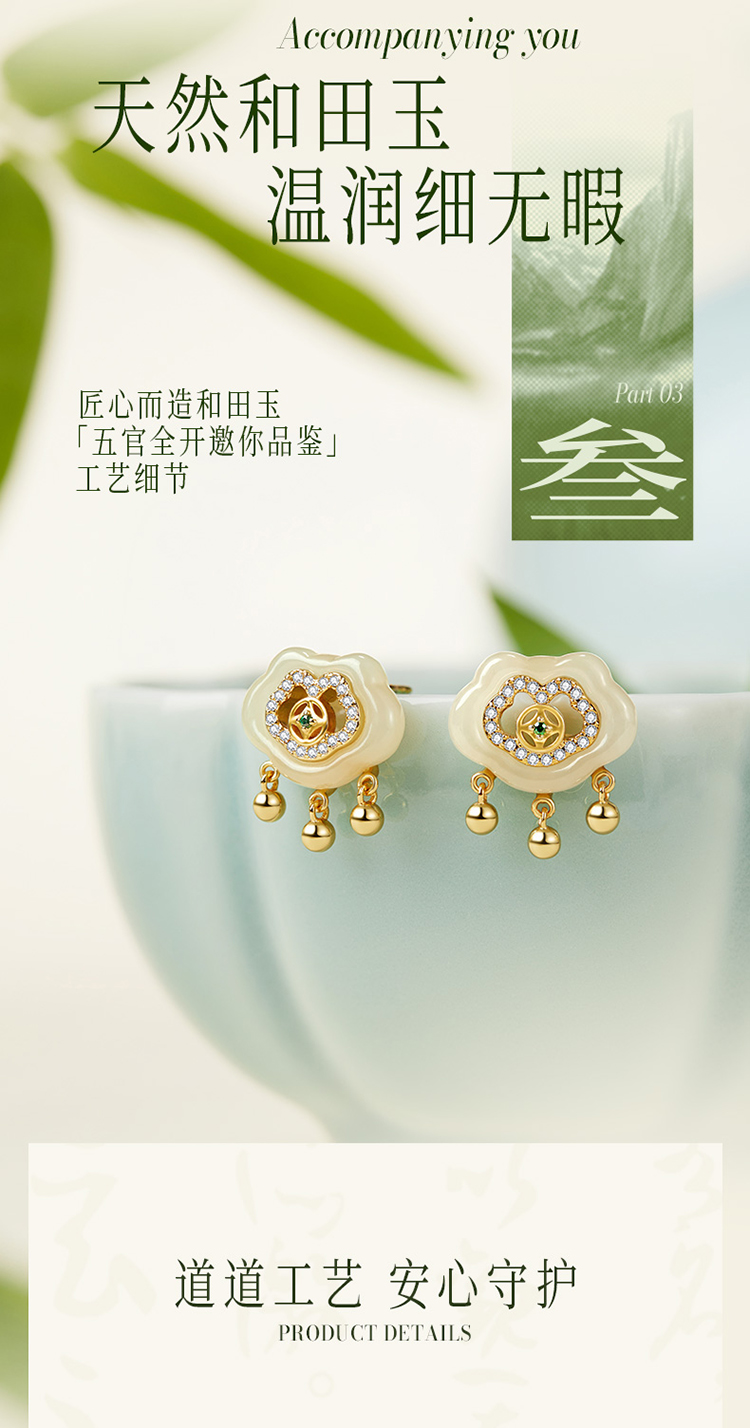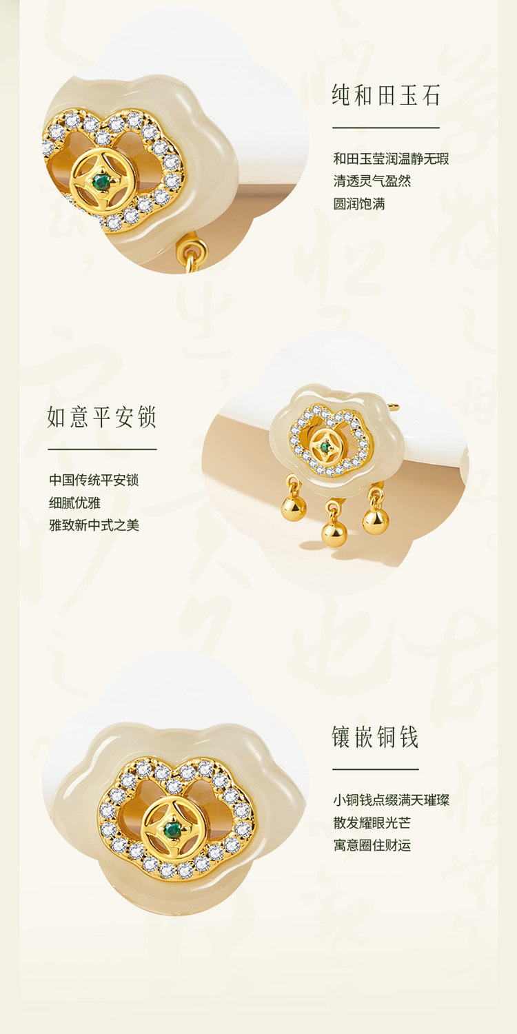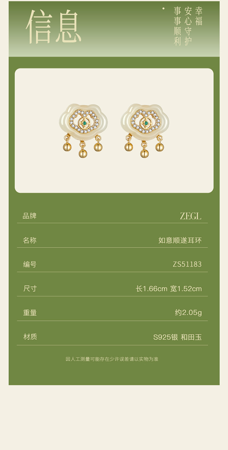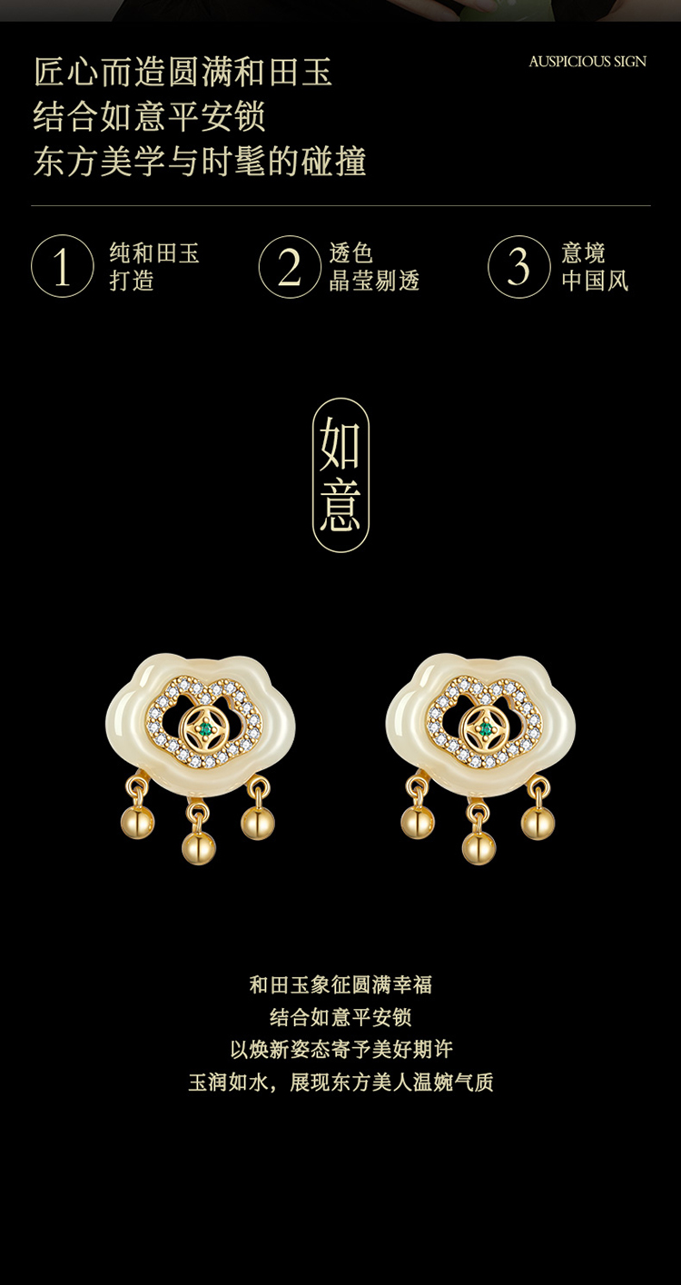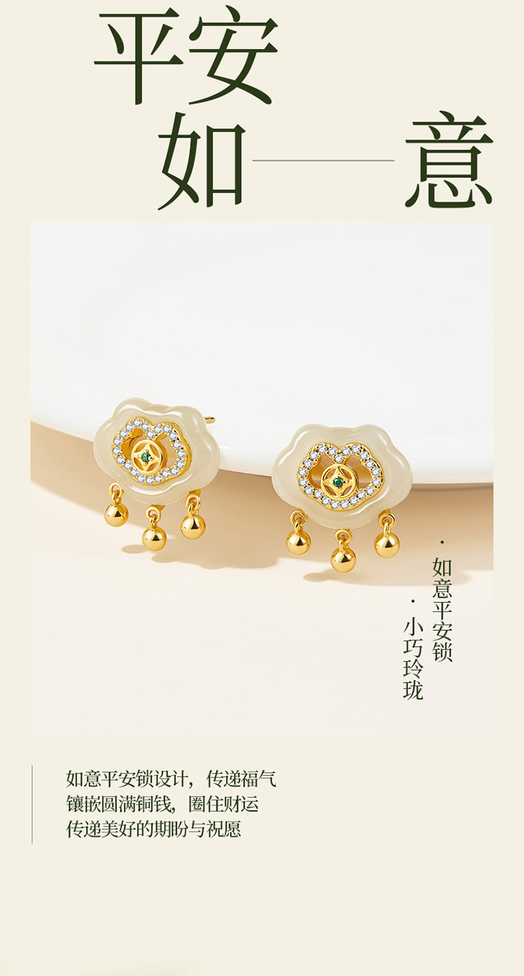 ZEGL设计师925银母亲节礼物和田玉耳环女2024新款新中式耳钉耳饰