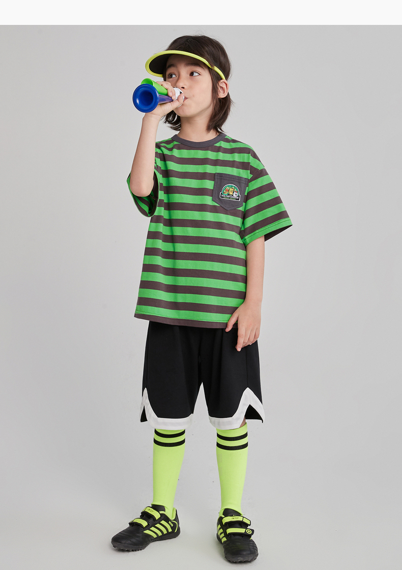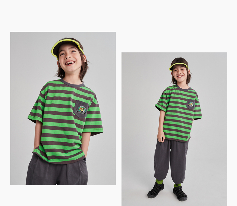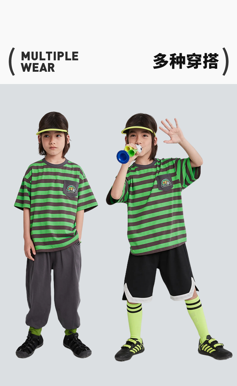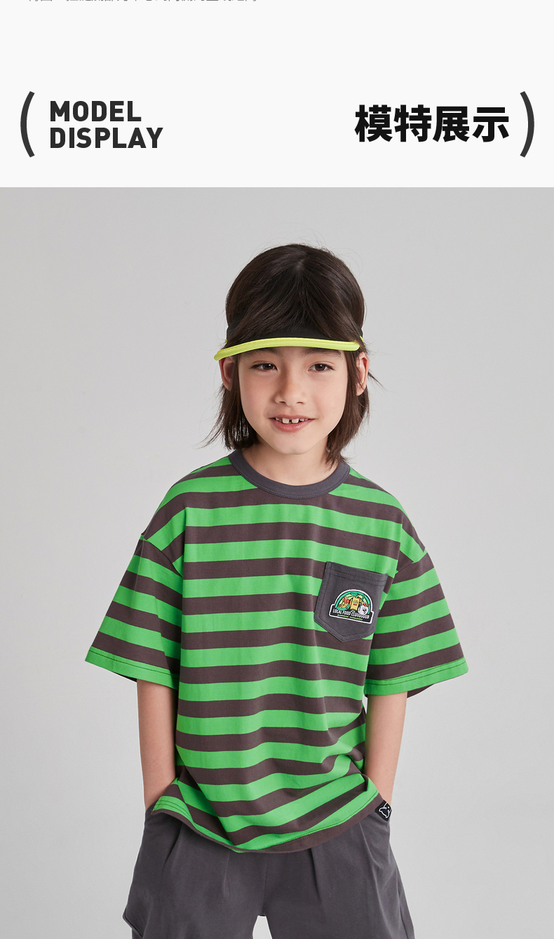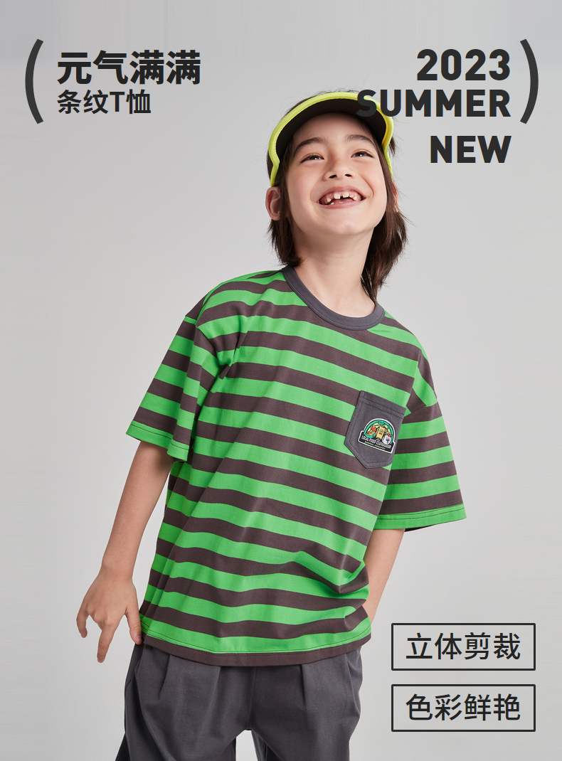 漫画家潮童装男童短袖条纹2023新款T恤薄款宽松透气原创儿童上衣