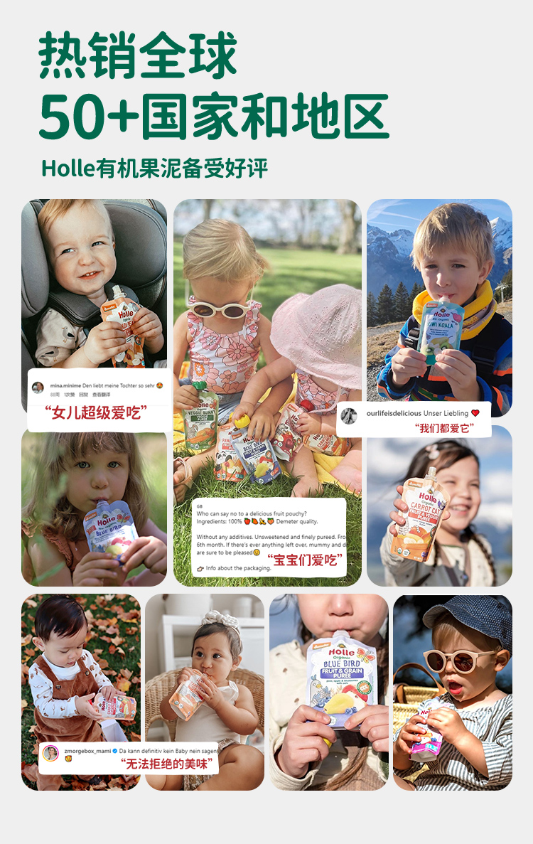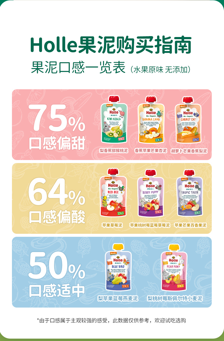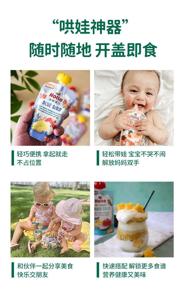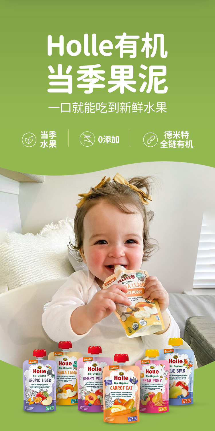 Holle(泓乐)婴幼儿有机苹果桃猕猴桃等混合纯水果泥100g袋装宝宝进口辅食泥 效期到26年7-8月 含税价