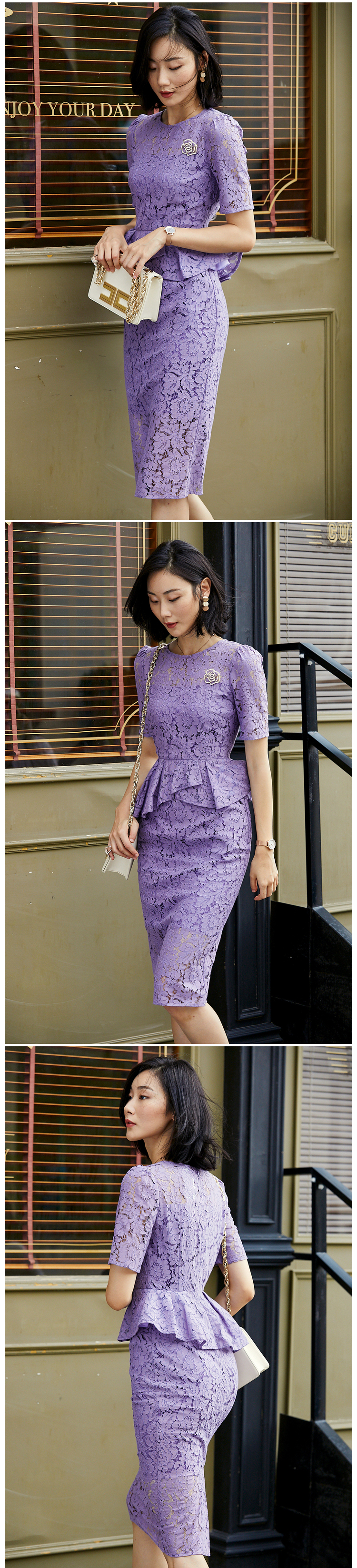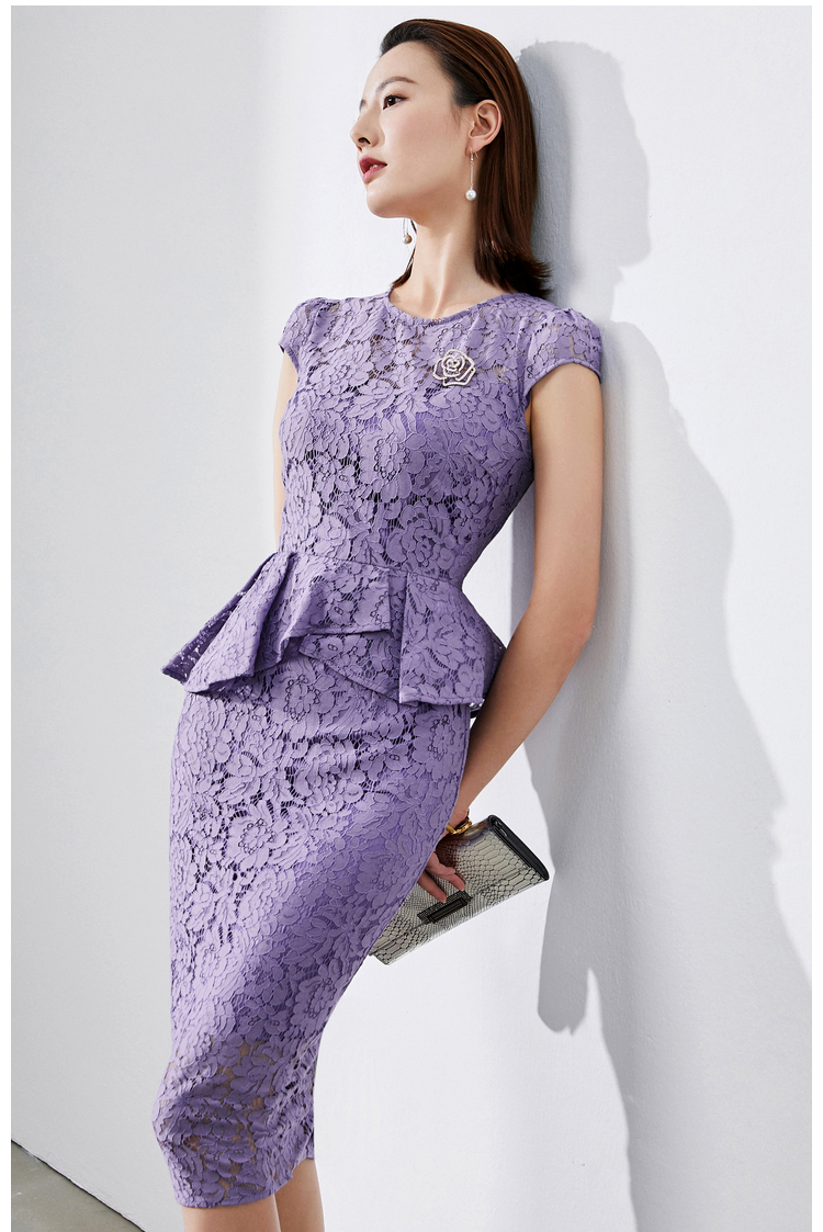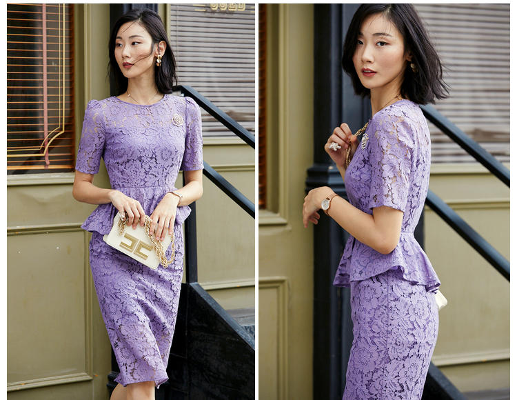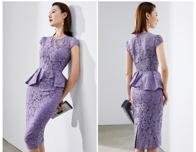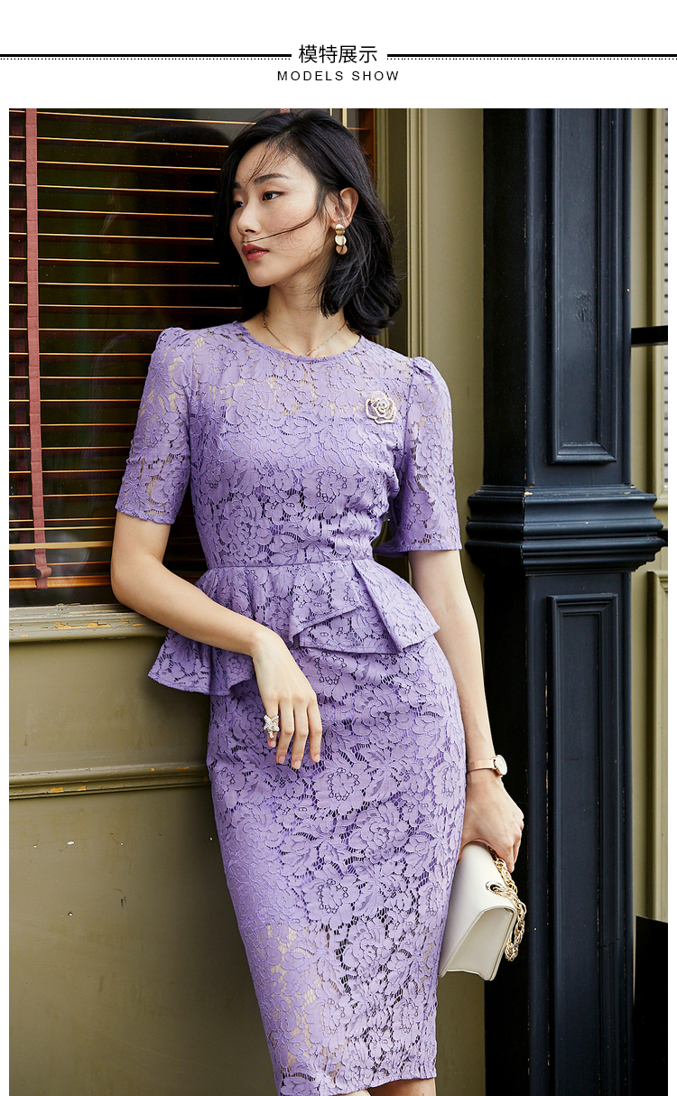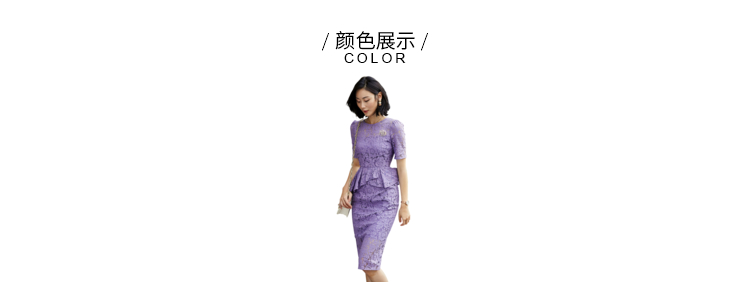 孤品-J8282428B颈袖添香季新款时尚收腰显瘦包臀职场装蕾丝连衣裙 黄色短袖偏大一码不退可换