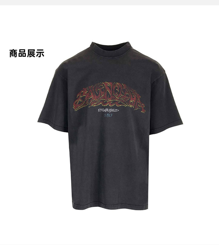 BALENCIAGA 巴黎世家 男士棉质徽标印花圆领短袖T恤 黑色 764235 TPVM8 1568