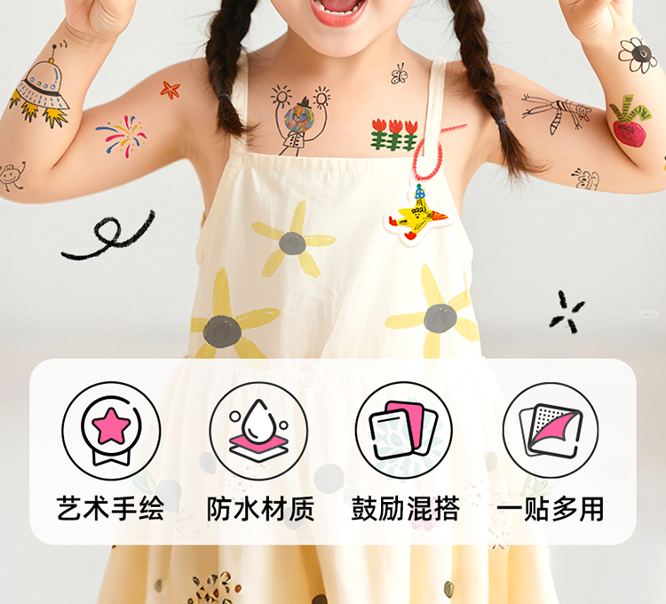 【丸丫专属】mideer弥鹿儿童纹身贴持久彩色宝宝可洗手绘贴纸男女孩生日礼物