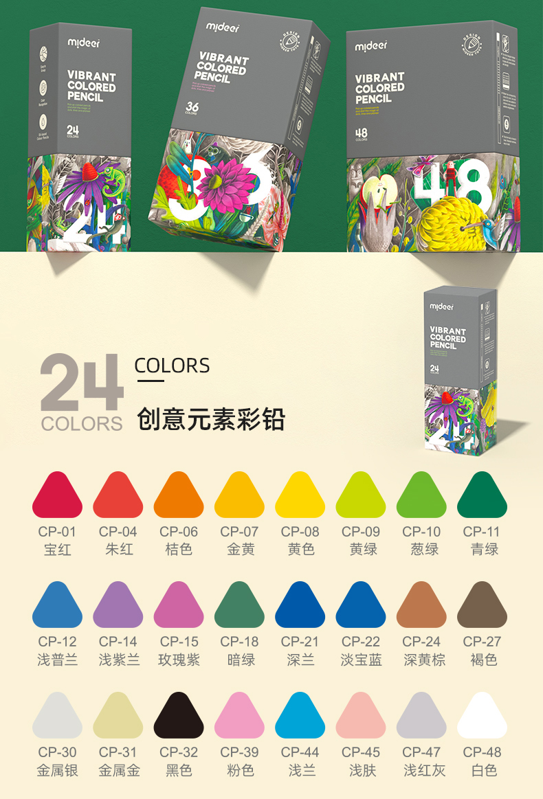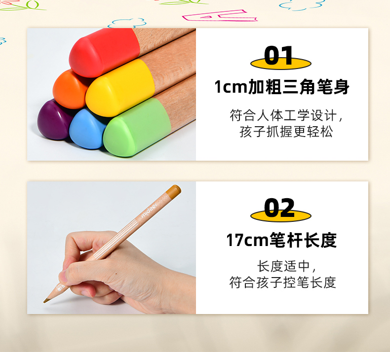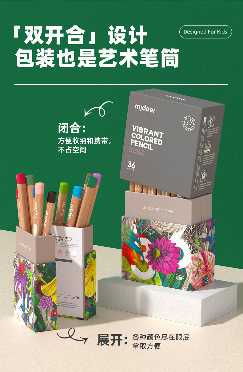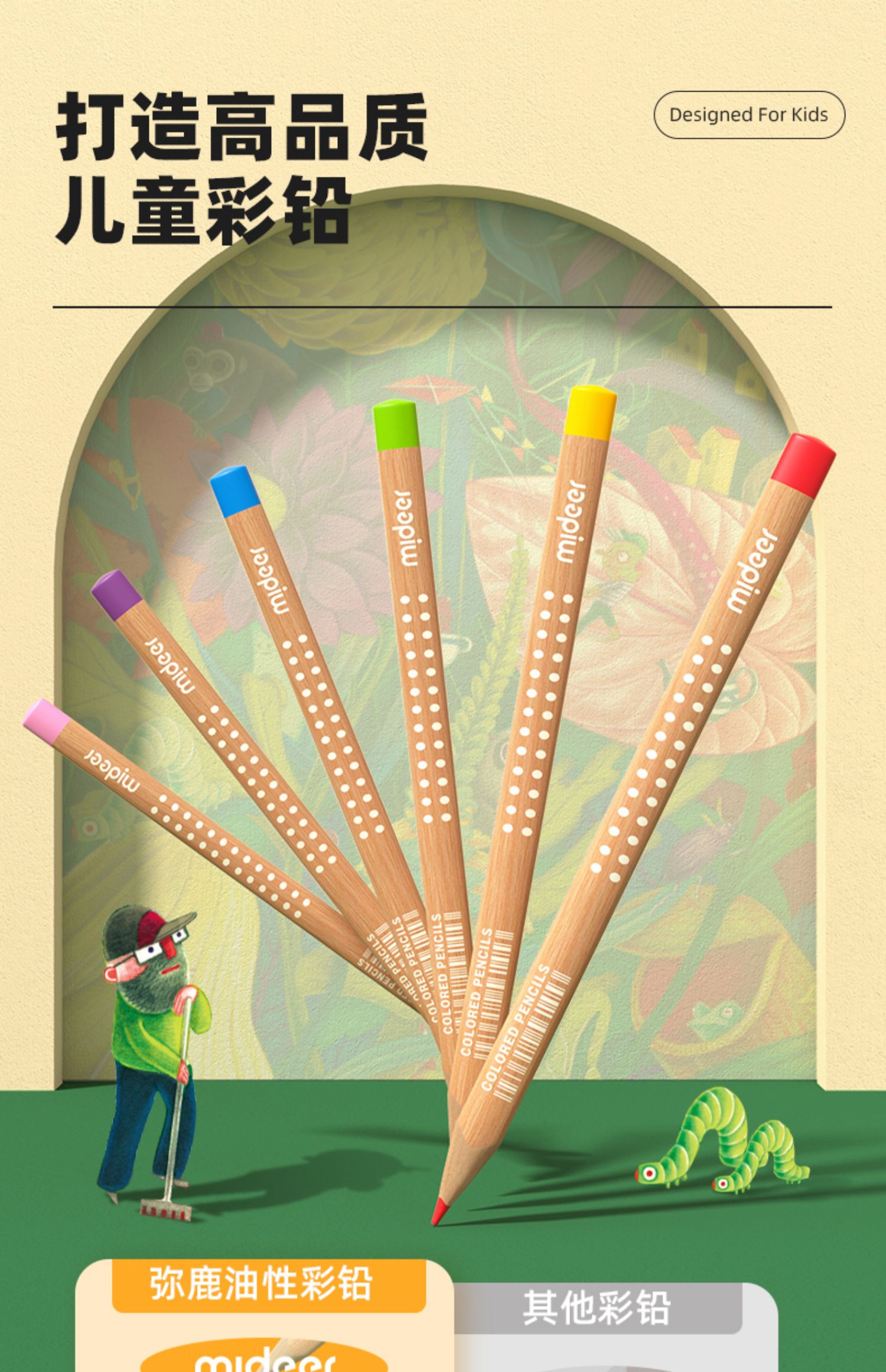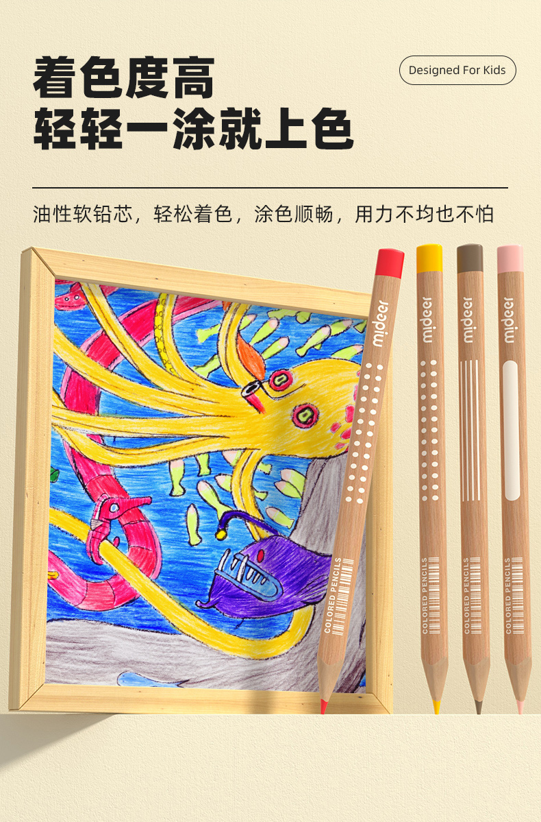 mideer弥鹿儿童彩色铅笔油性彩铅绘画美术专用幼儿园美术24色36色画画套装小学生安全无毒手绘素描铅画笔
