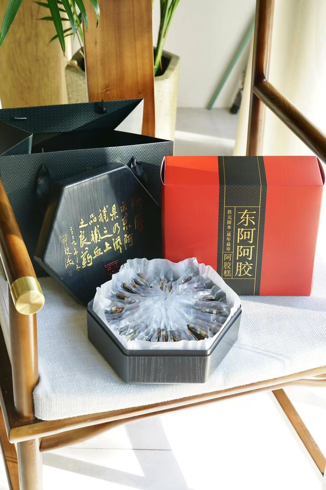 原料:阿胶,红枣,黄酒,芝麻,核桃,枸杞,冰糖(玫瑰)