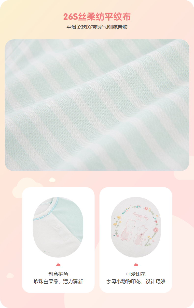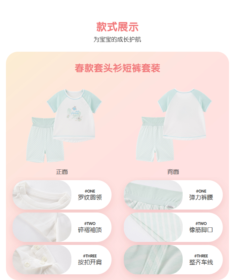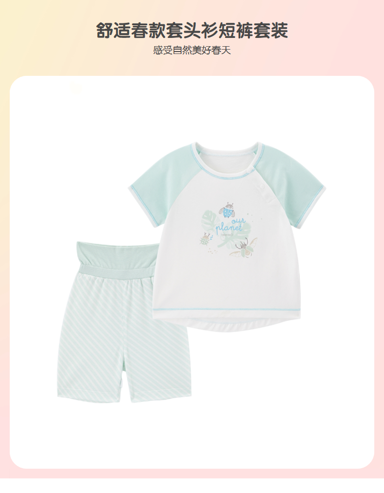 丽婴房-内衣类(夏)A7N 素色提花一粒袖短袖套装