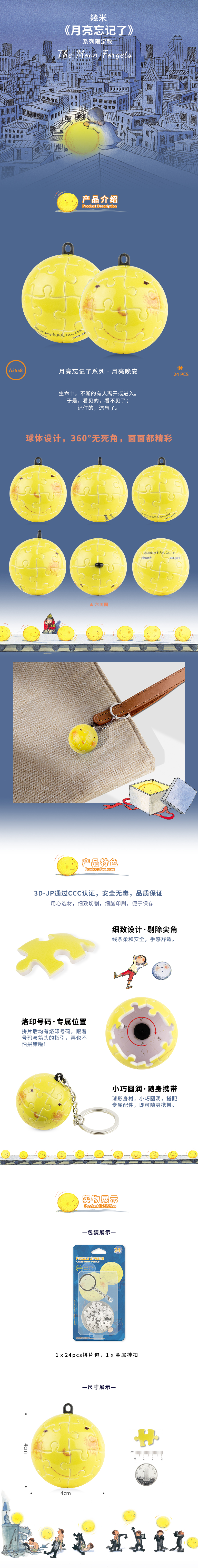 【折扣商品 不退不换】24片 钥匙扣拼图 塑料拼图 A3558 月亮忘记了系列- 月亮晚安