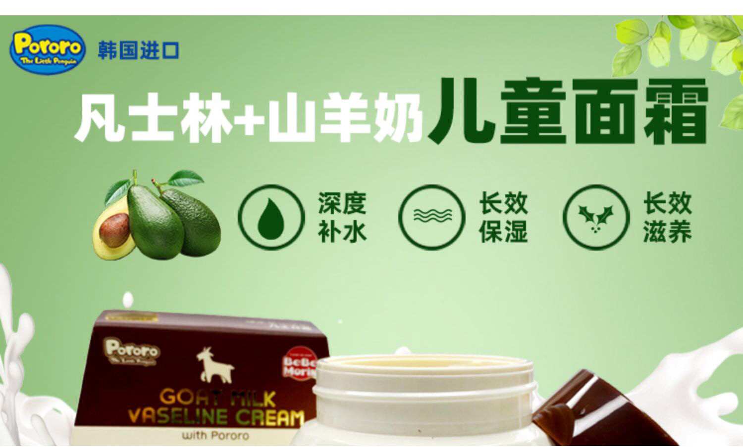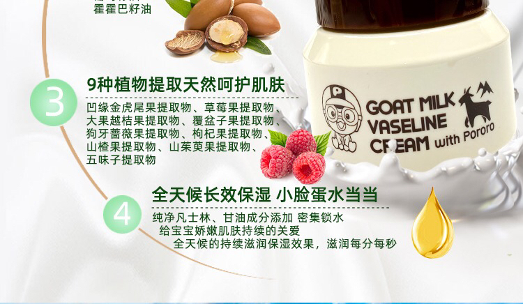 啵乐乐pororo-山羊奶凡士林儿童防冻面霜-保湿补水100G-会员6折