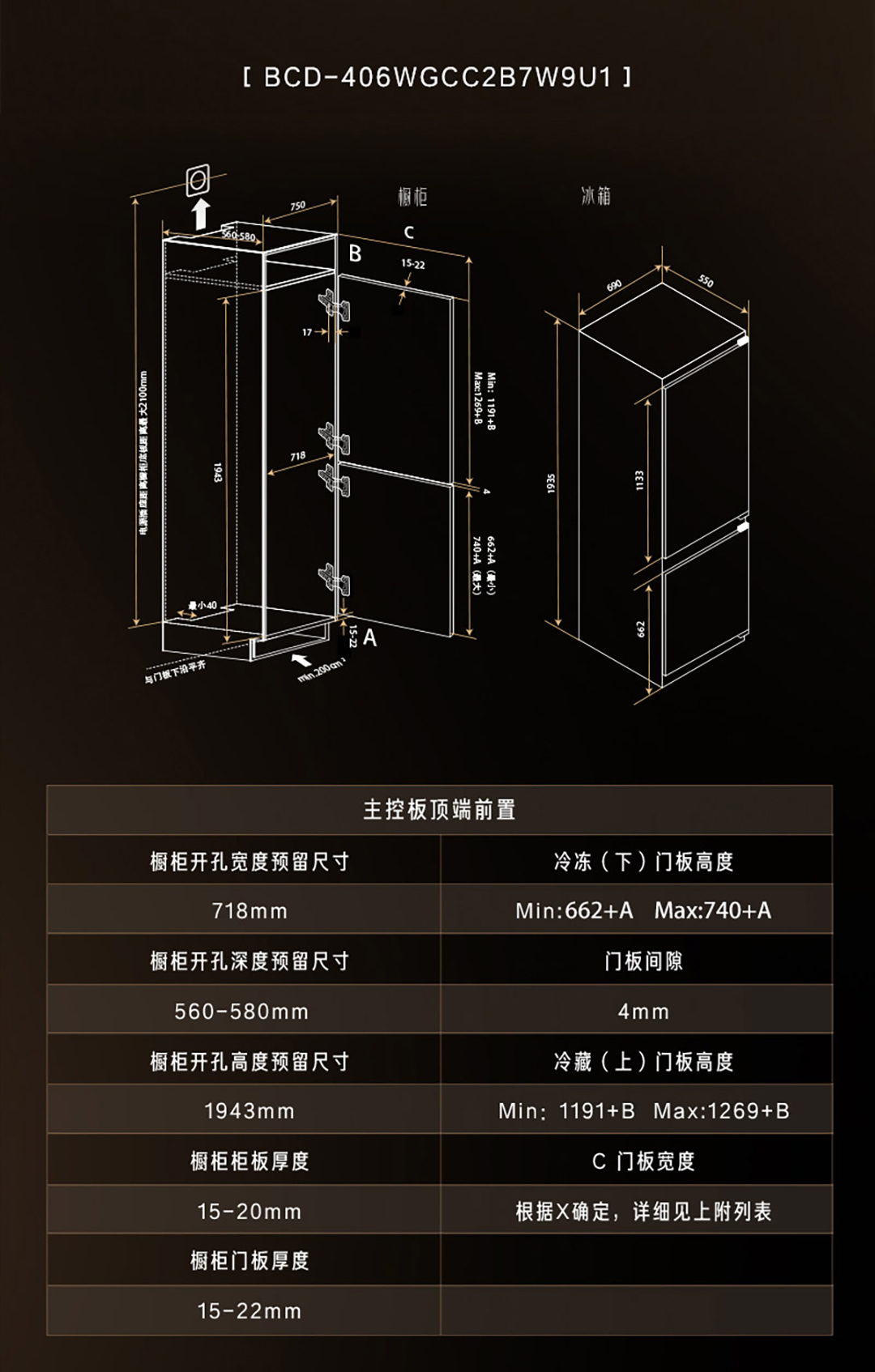 【美居】卡萨帝 风冷两门 冰箱 BCD-406WGCC2B7W9U1