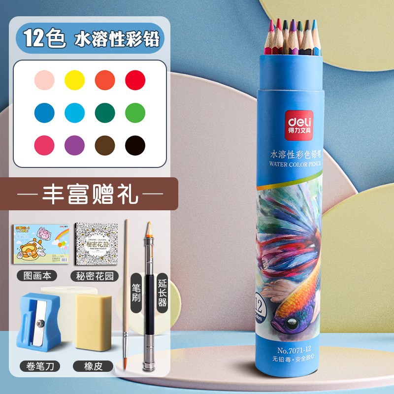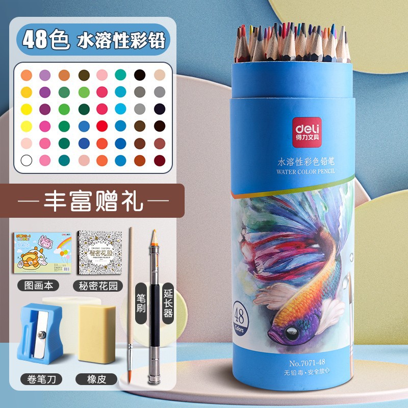 得力彩铅中国风采铅笔水溶性油性专业手绘绘画彩色铅笔套装