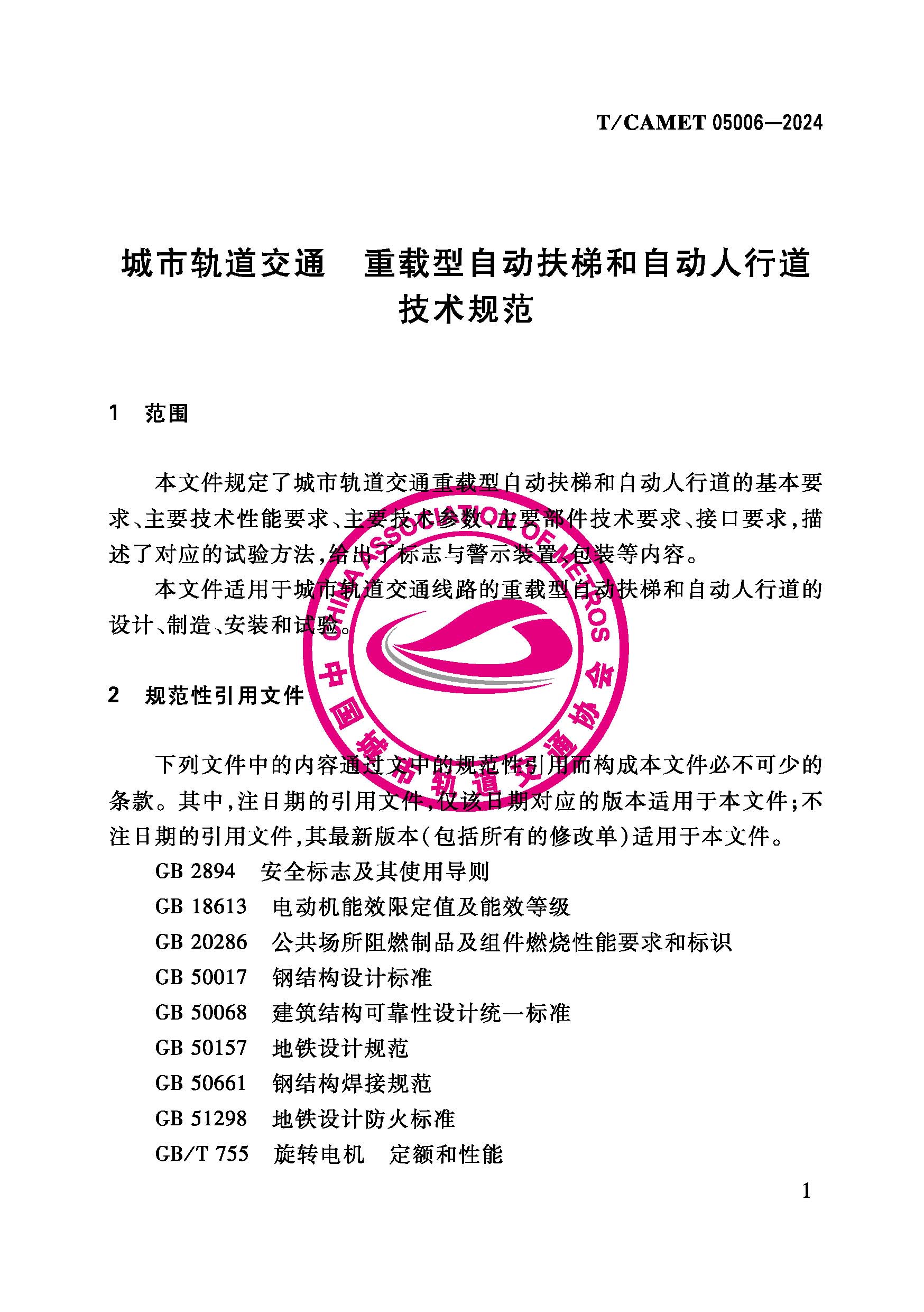 7130 城市轨道交通 重载型自动扶梯和自动人行道 技术规范(T/CAMET05006-2024)