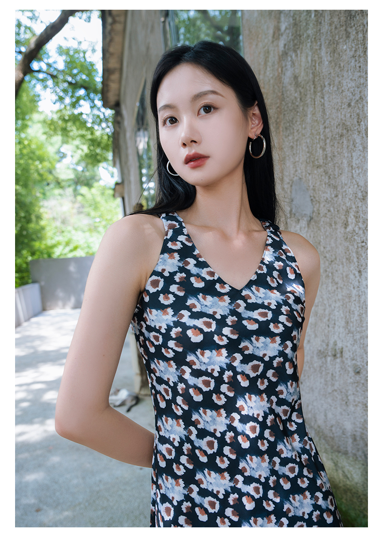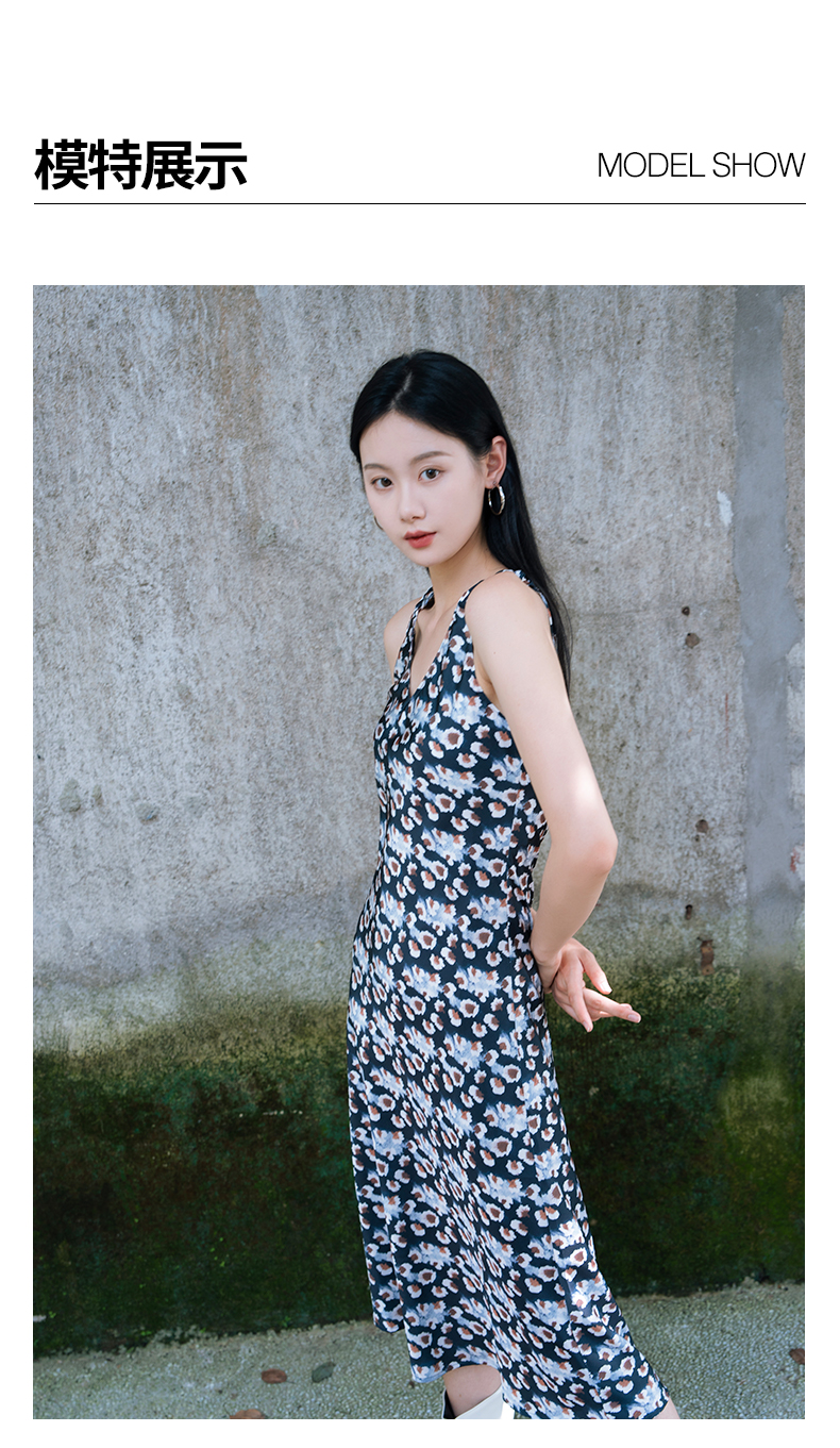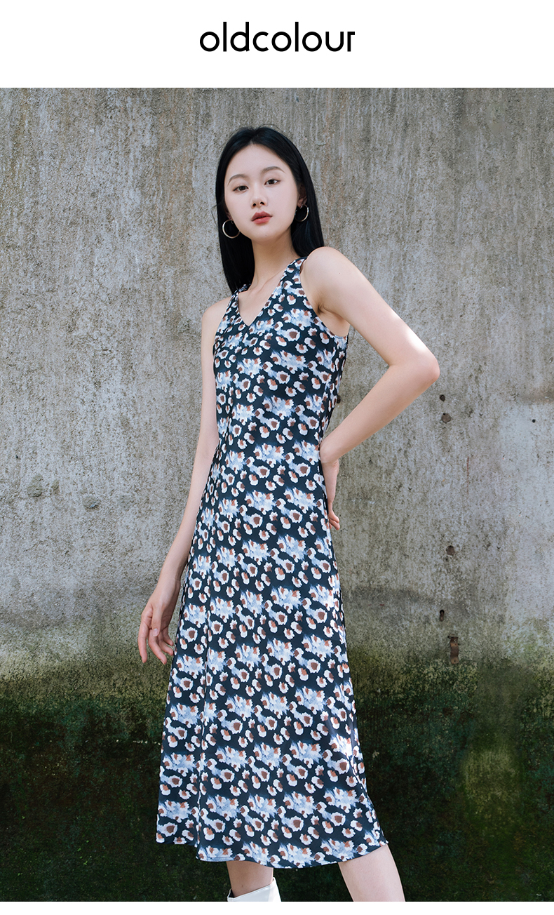 oldcolour秋季新款气质修身显瘦吊带无袖碎花连衣裙女P321002A1