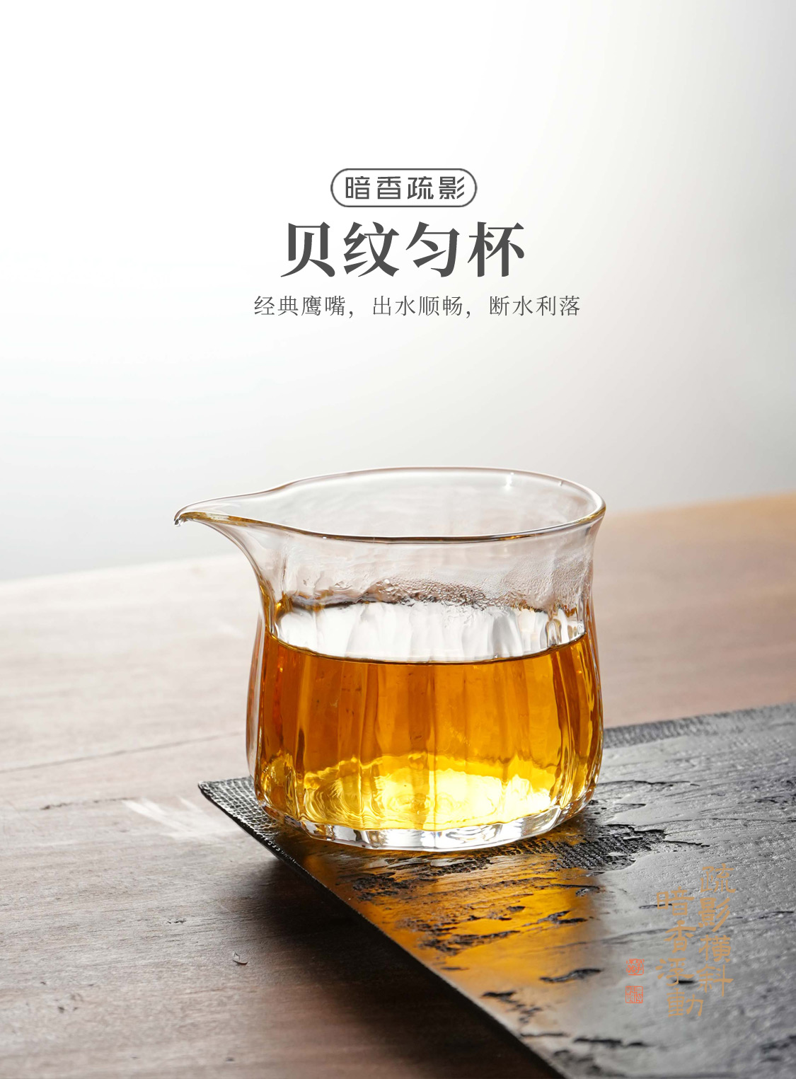 暗香疏影/贝纹匀杯高硼硅玻璃手抓无耳茶海分茶器220ml