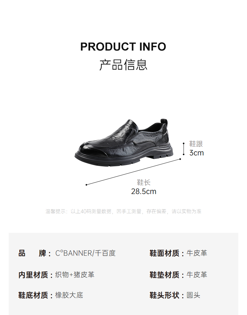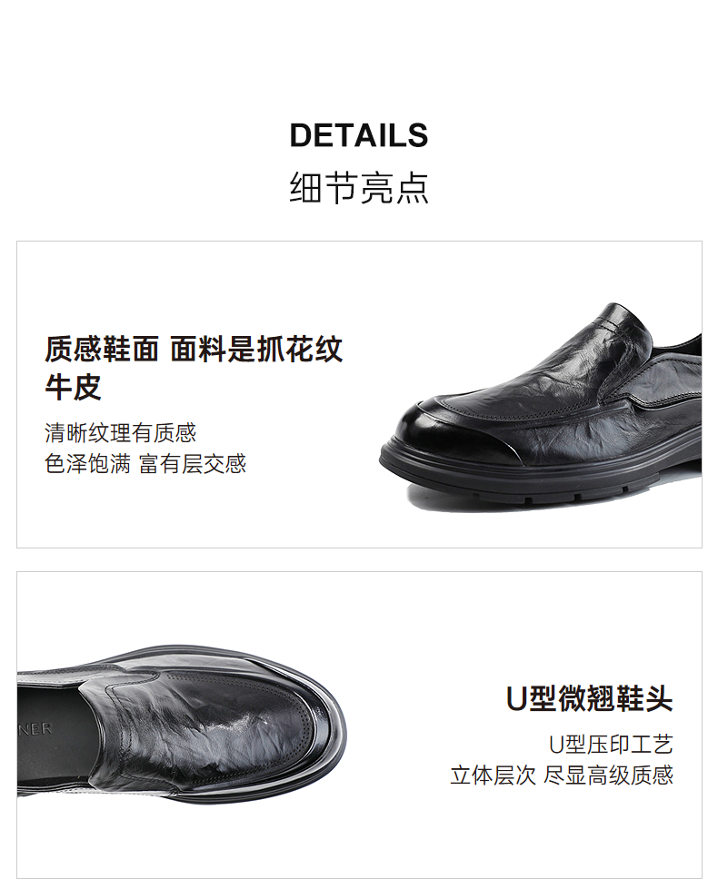 千百度2026春季男鞋清晰纹理有质感 色泽饱满商务休闲A26166681