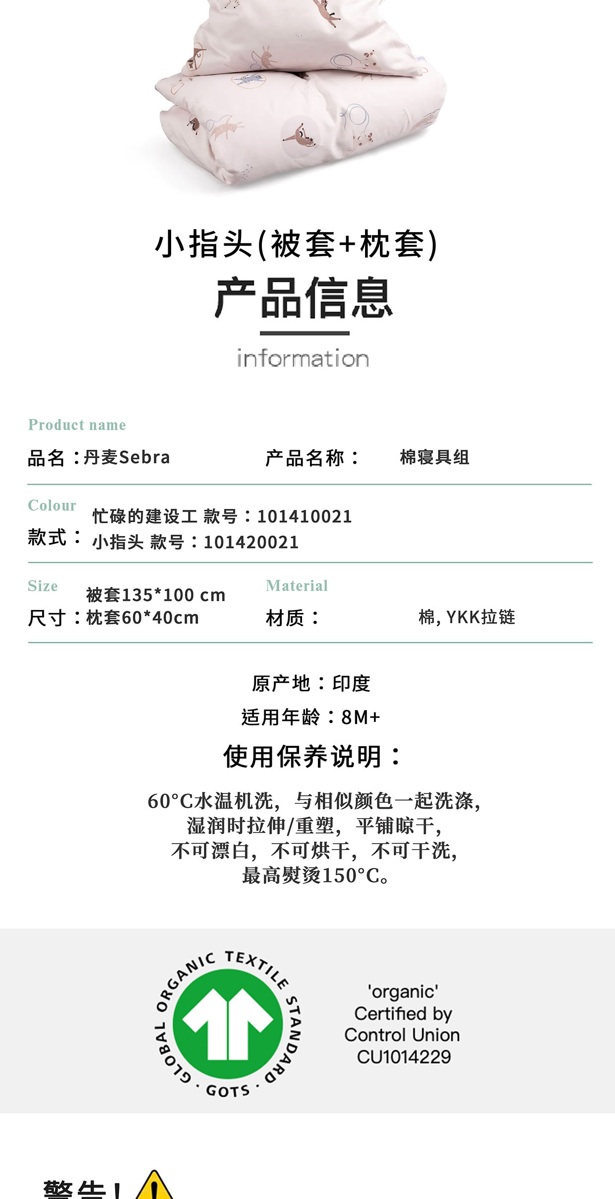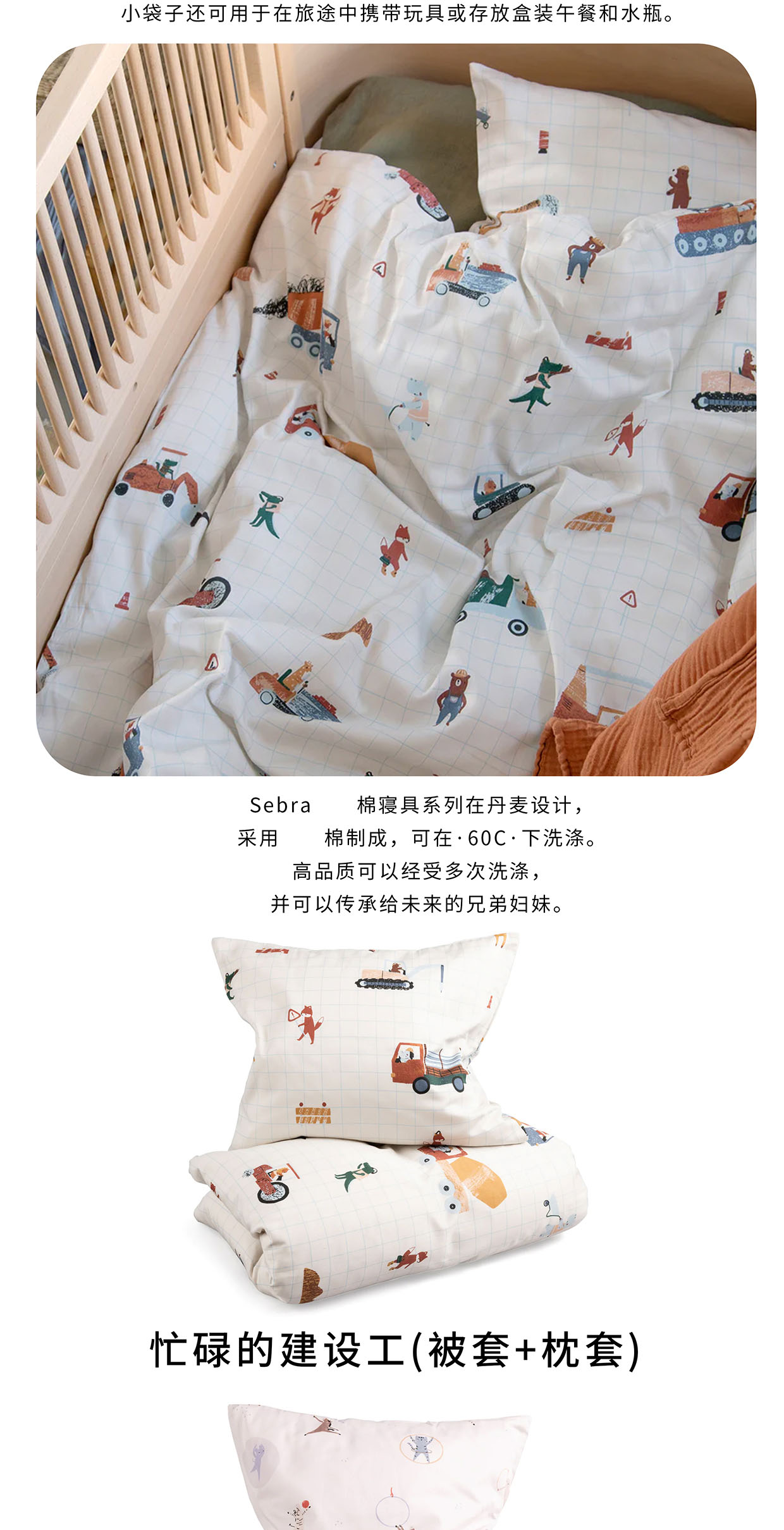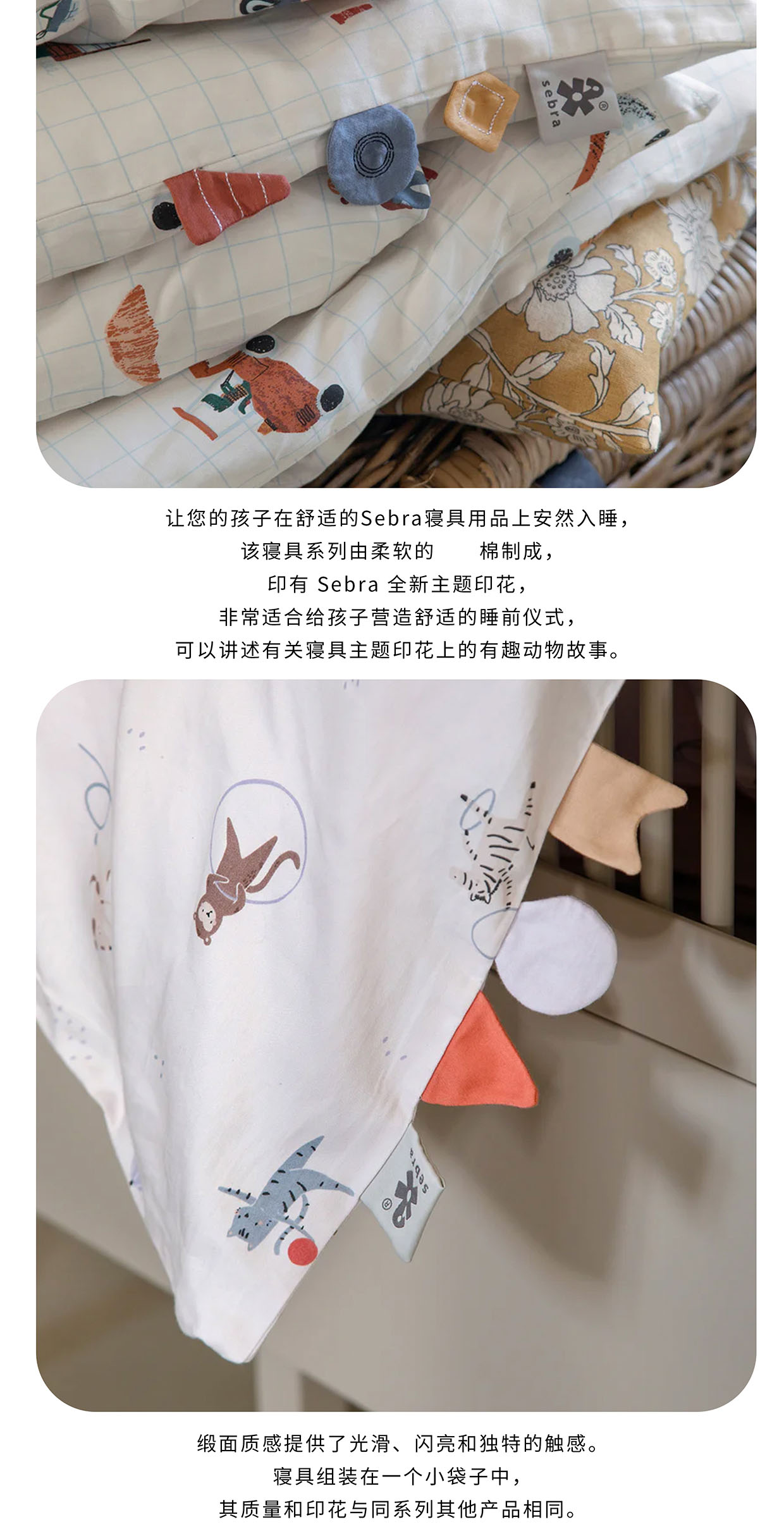 Sebra婴儿床寝具组 宝宝可爱卡通印花被套+枕套床上用品 8月+