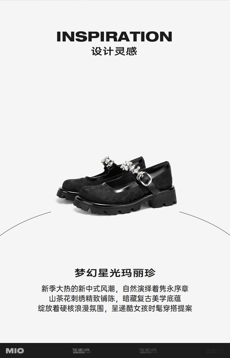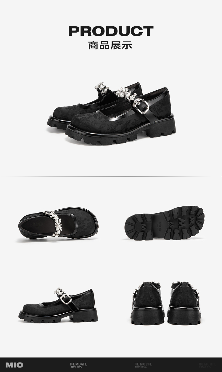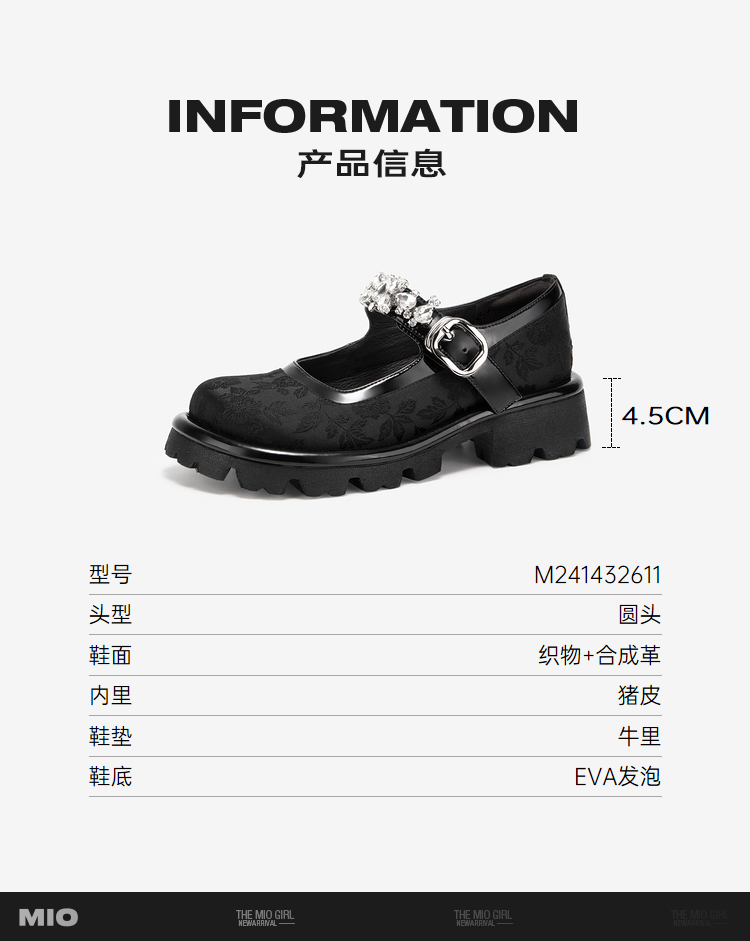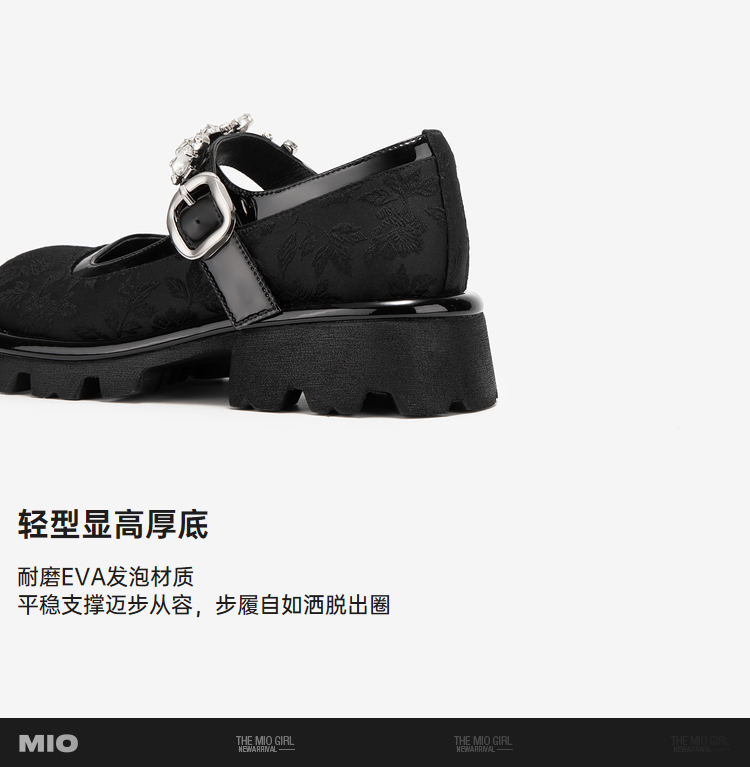 MIO米奥春季圆头中跟浅口单鞋国风一字式扣带复古玛丽珍鞋M241432611