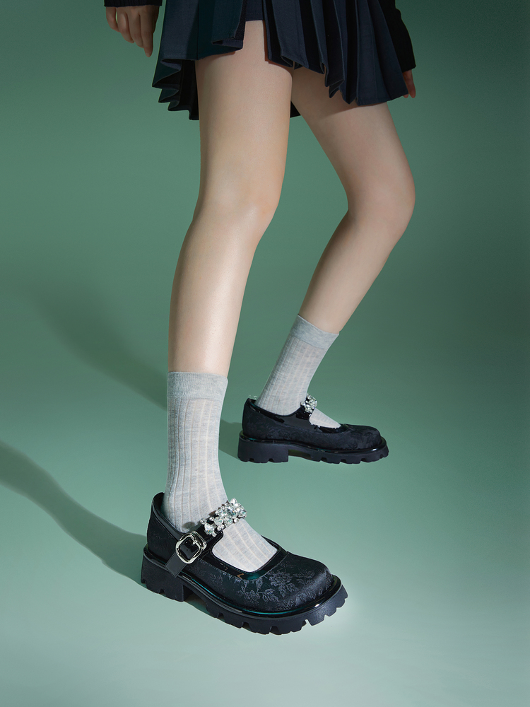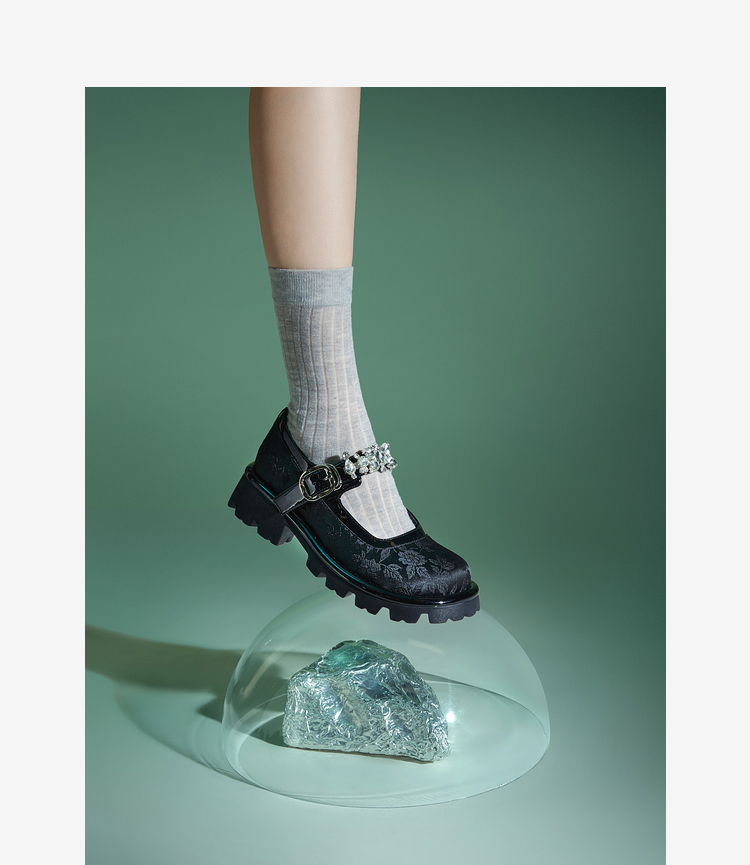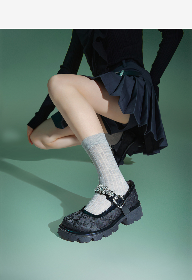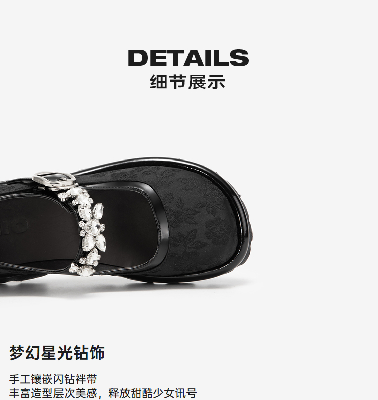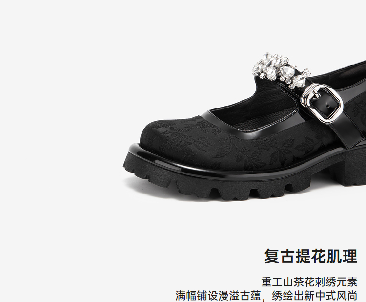 MIO米奥春季圆头中跟浅口单鞋国风一字式扣带复古玛丽珍鞋M241432611