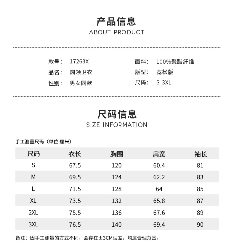 赛琪秋季男女同款情侣圆领卫衣17263X
