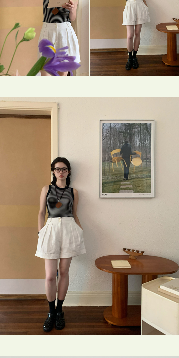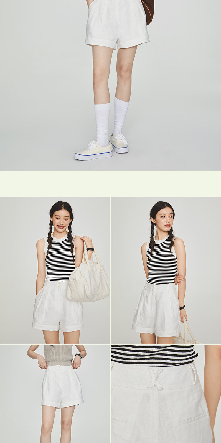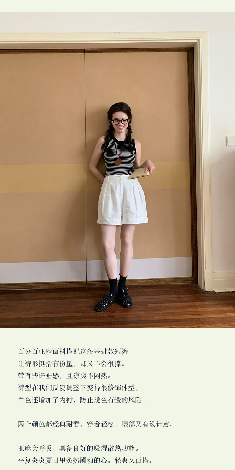 shyshystill/shy202305052/亚麻经典剪裁透气基础百搭垂顺感两色短裤