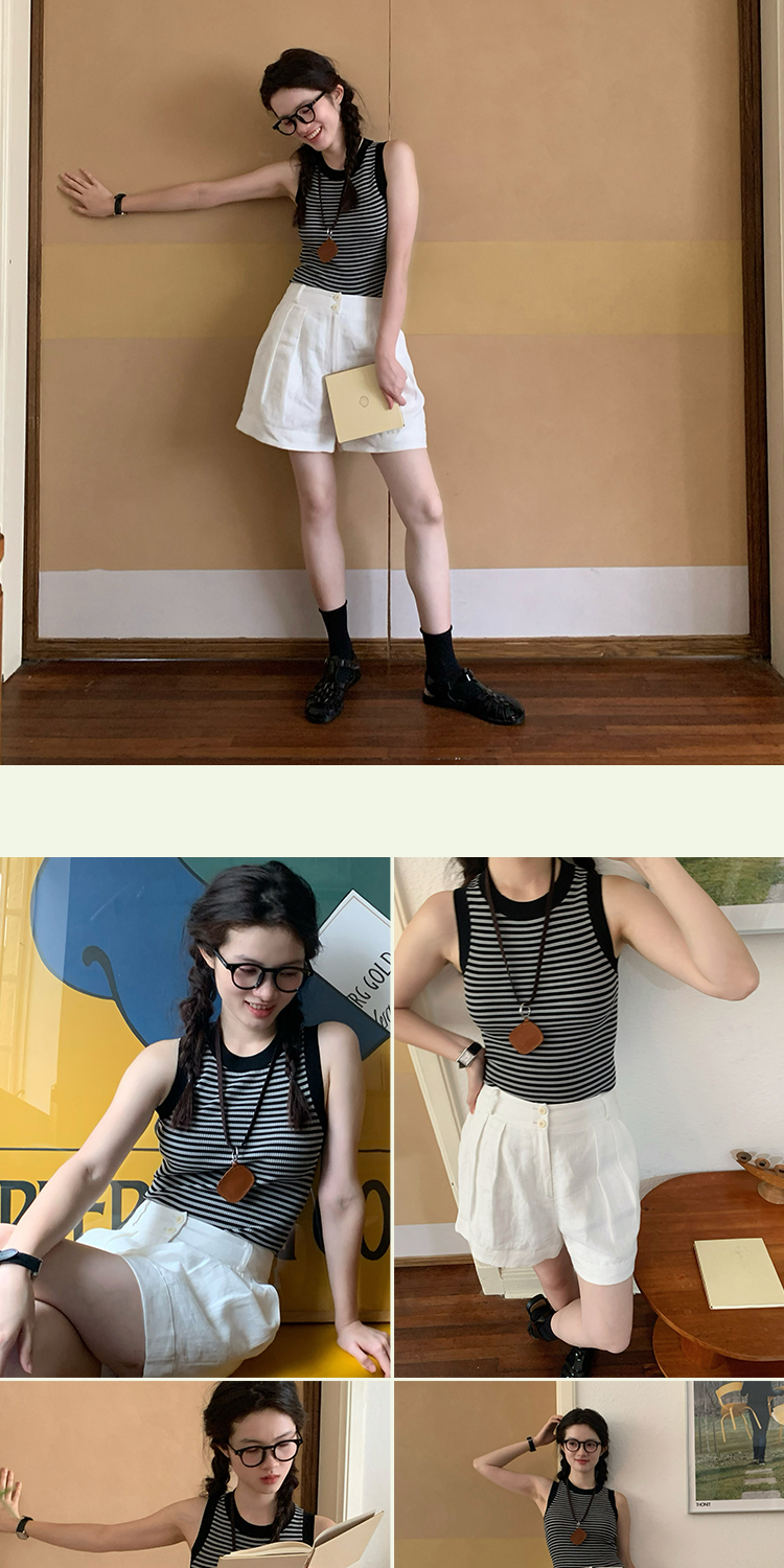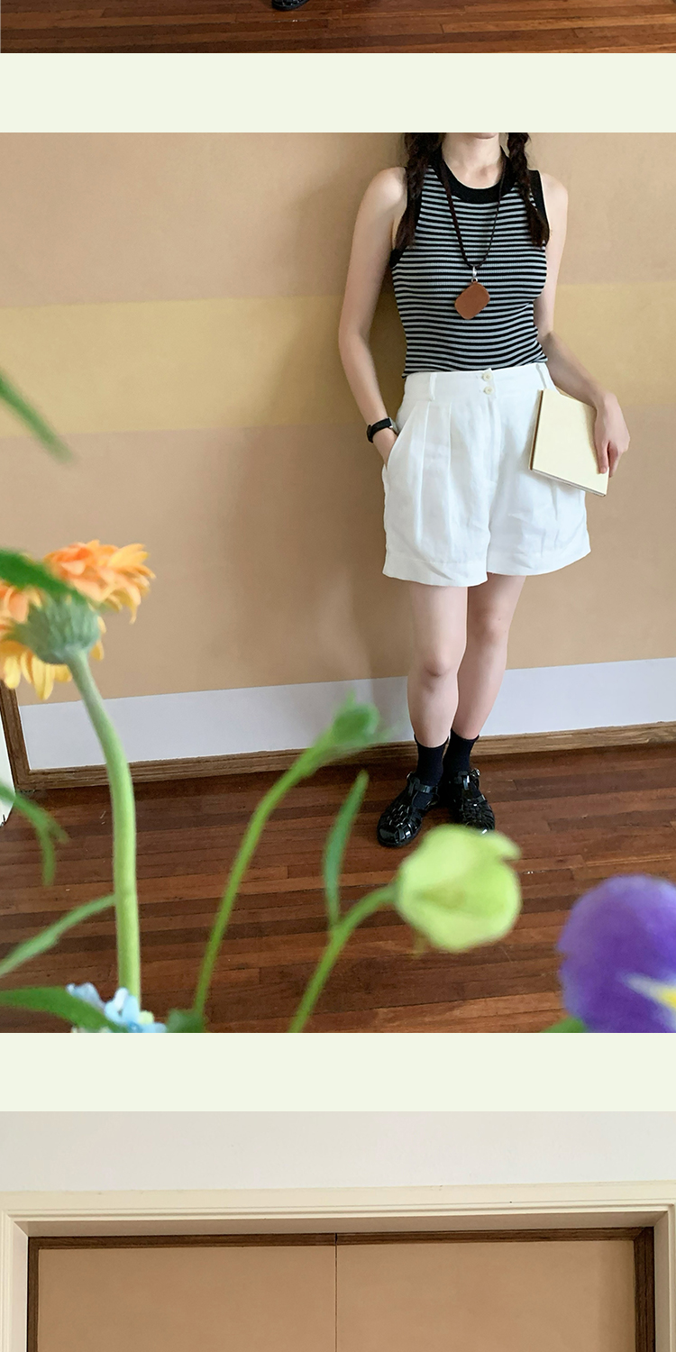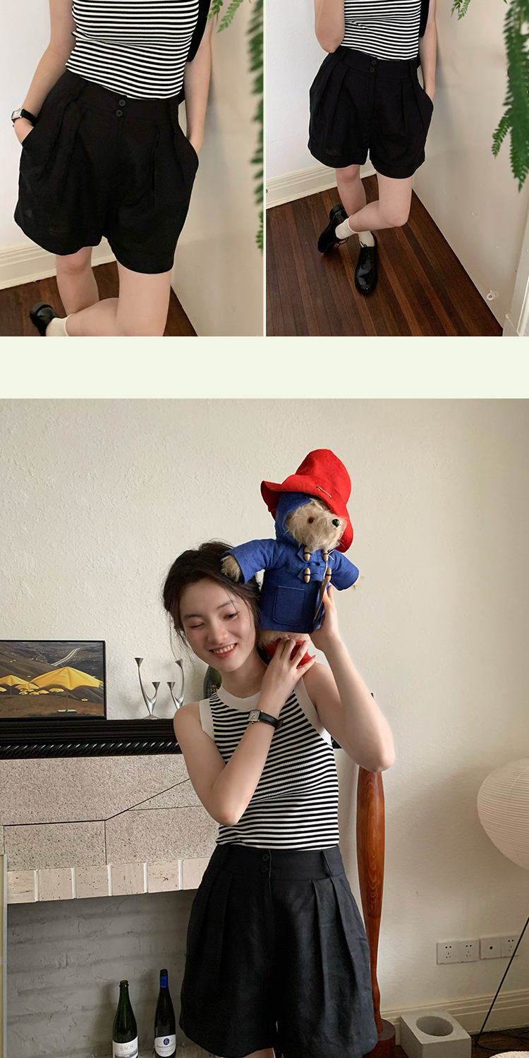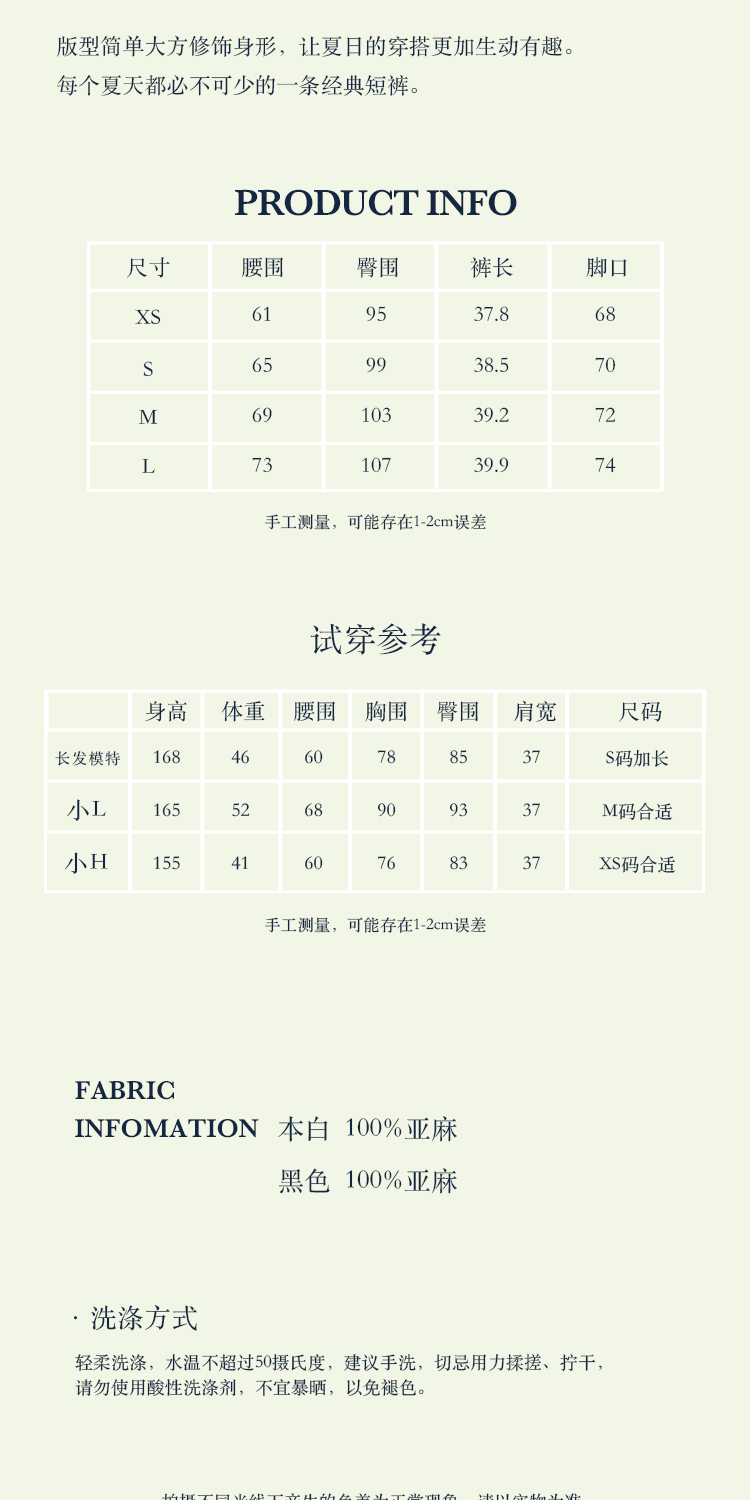 shyshystill/shy202305052/亚麻经典剪裁透气基础百搭垂顺感两色短裤