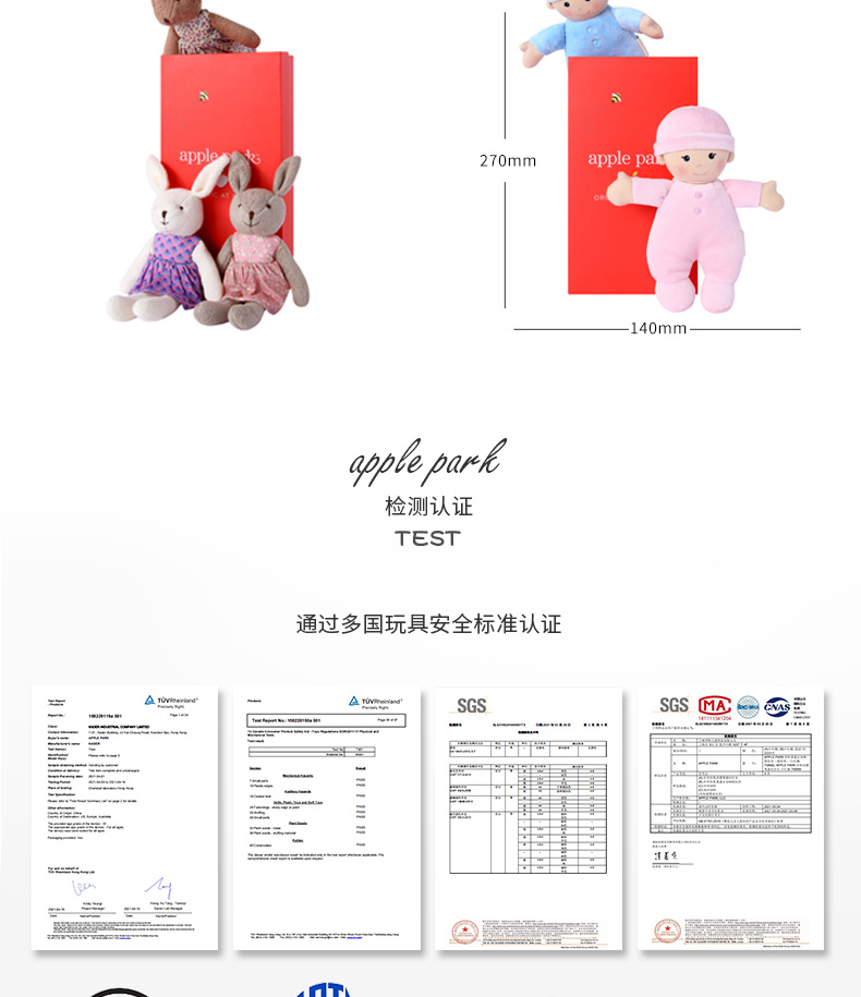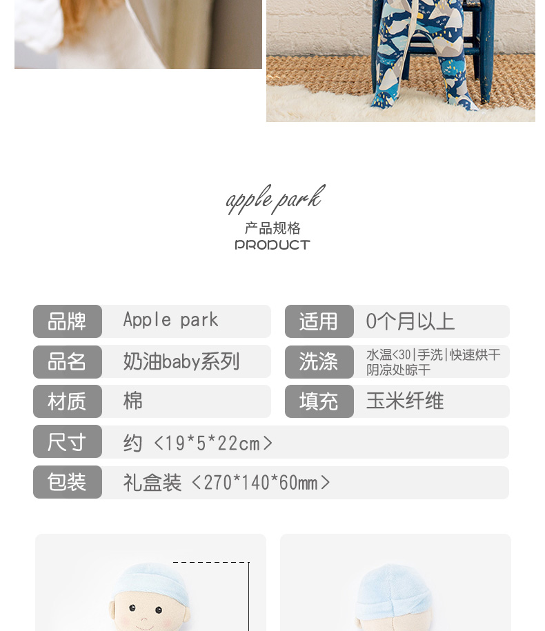 ApplePark 奶油Baby玩偶婴儿安抚玩偶可入口宝宝毛绒绒玩具0月+